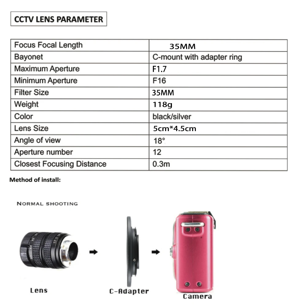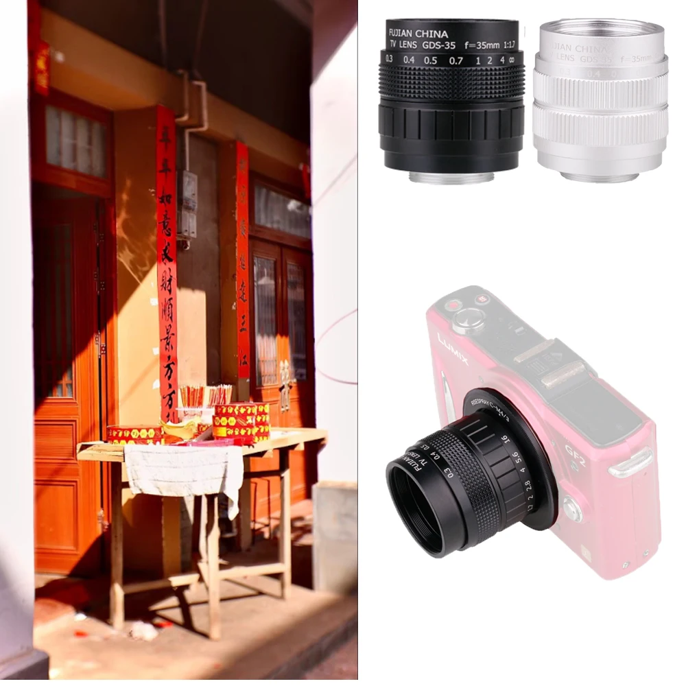 35mm F1.7 CCTV TV película lente C montaje + juego de anillos adaptadores para Sony NEX Olympus Panasonic M4/3 Canon EOSM/EOSR FUJI FX Nikon Z montaje