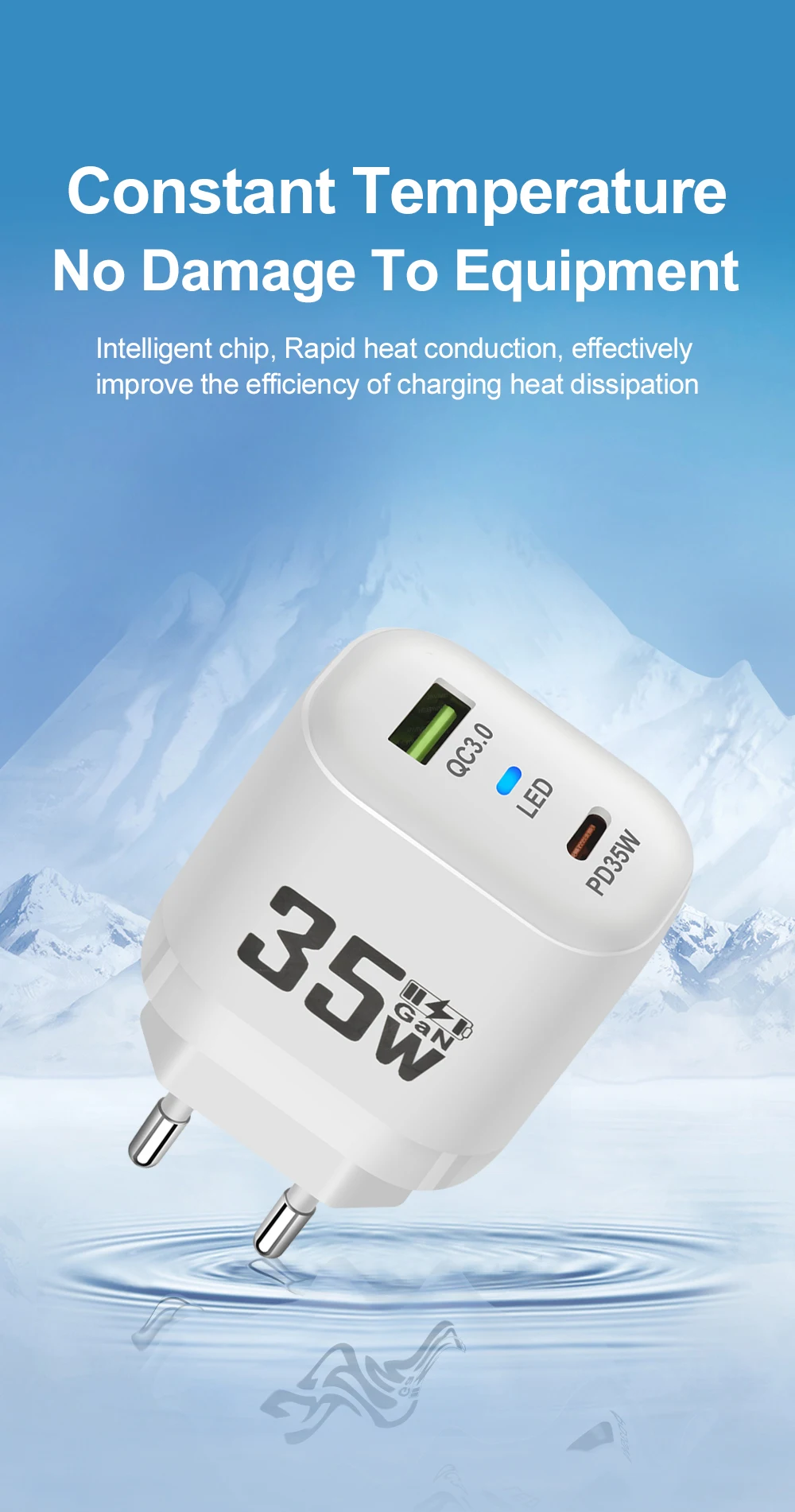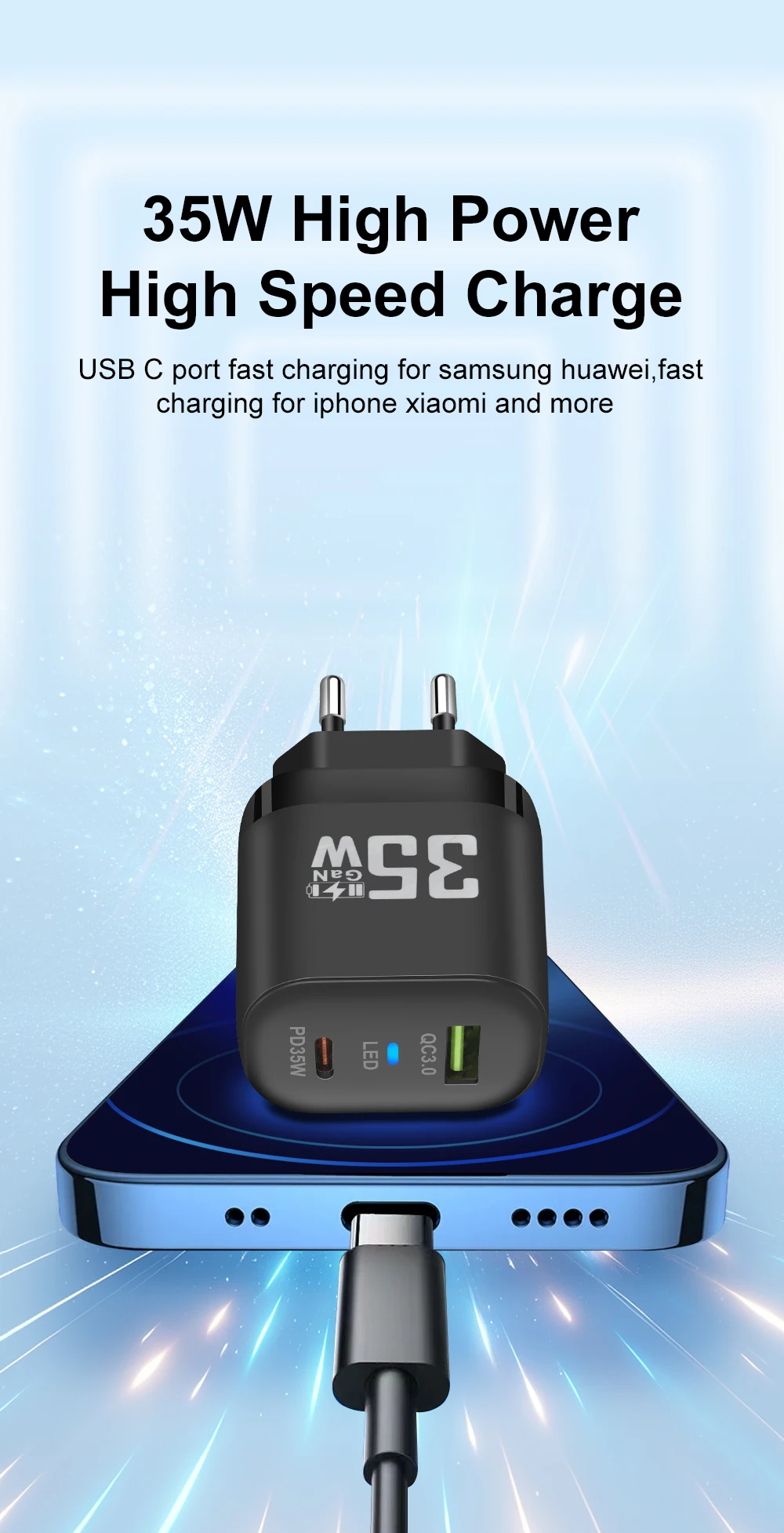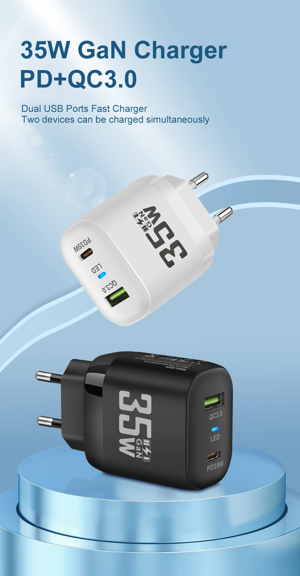 35W GaN Charger Type C Fast Charging QC3.0 For iPhone 15 14 Pro Max Huawei Xiaomi Samsung POCO Tablet USB C Charger PD Adapter