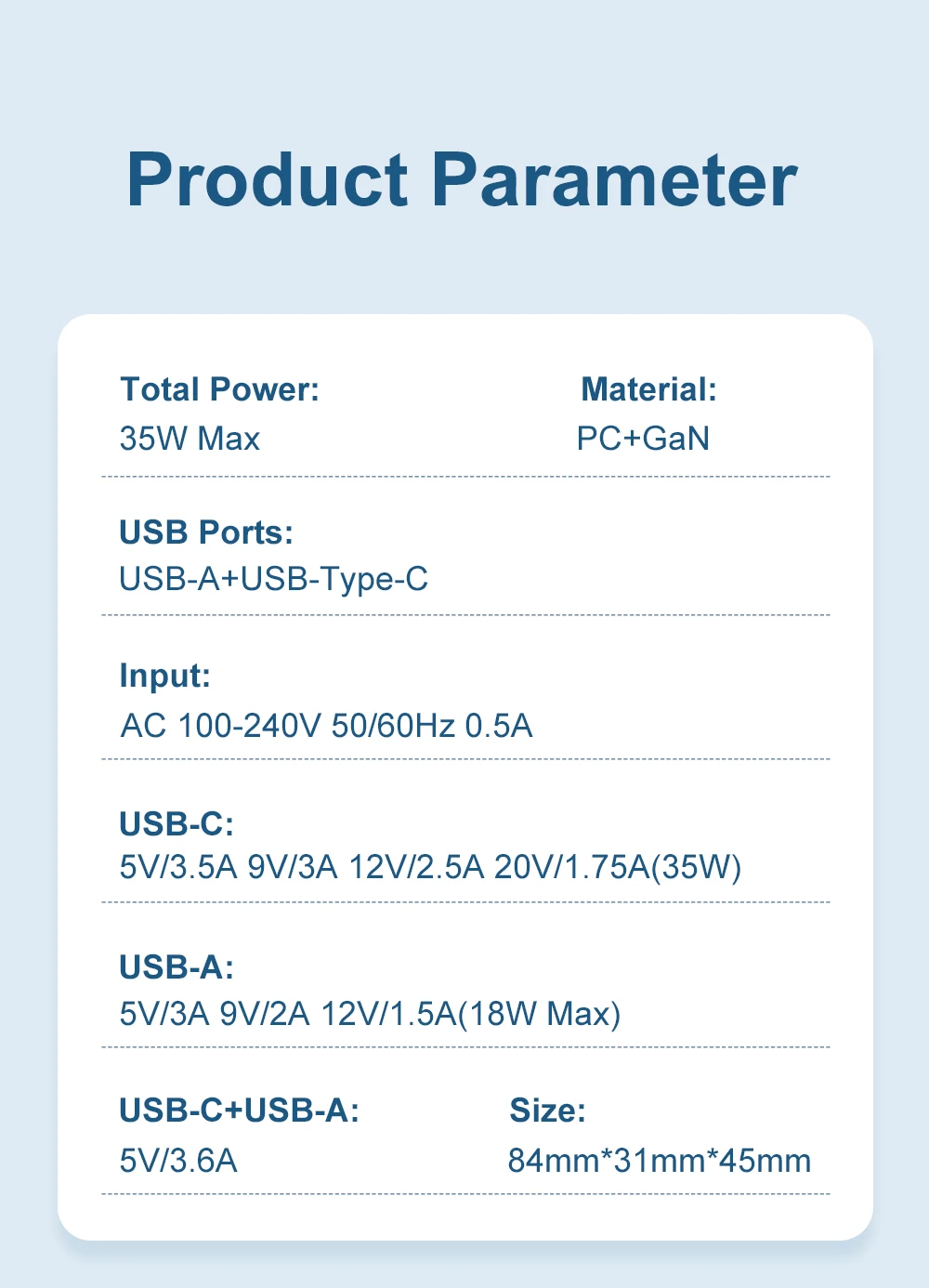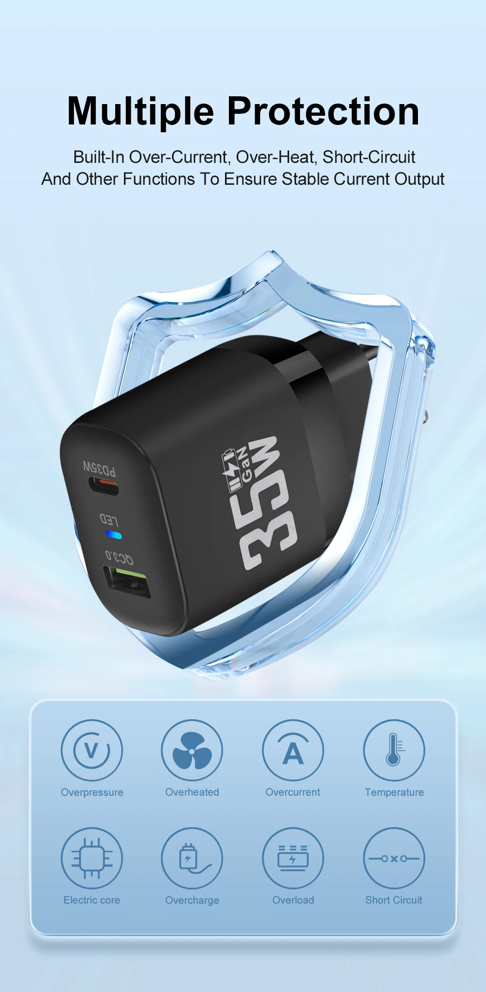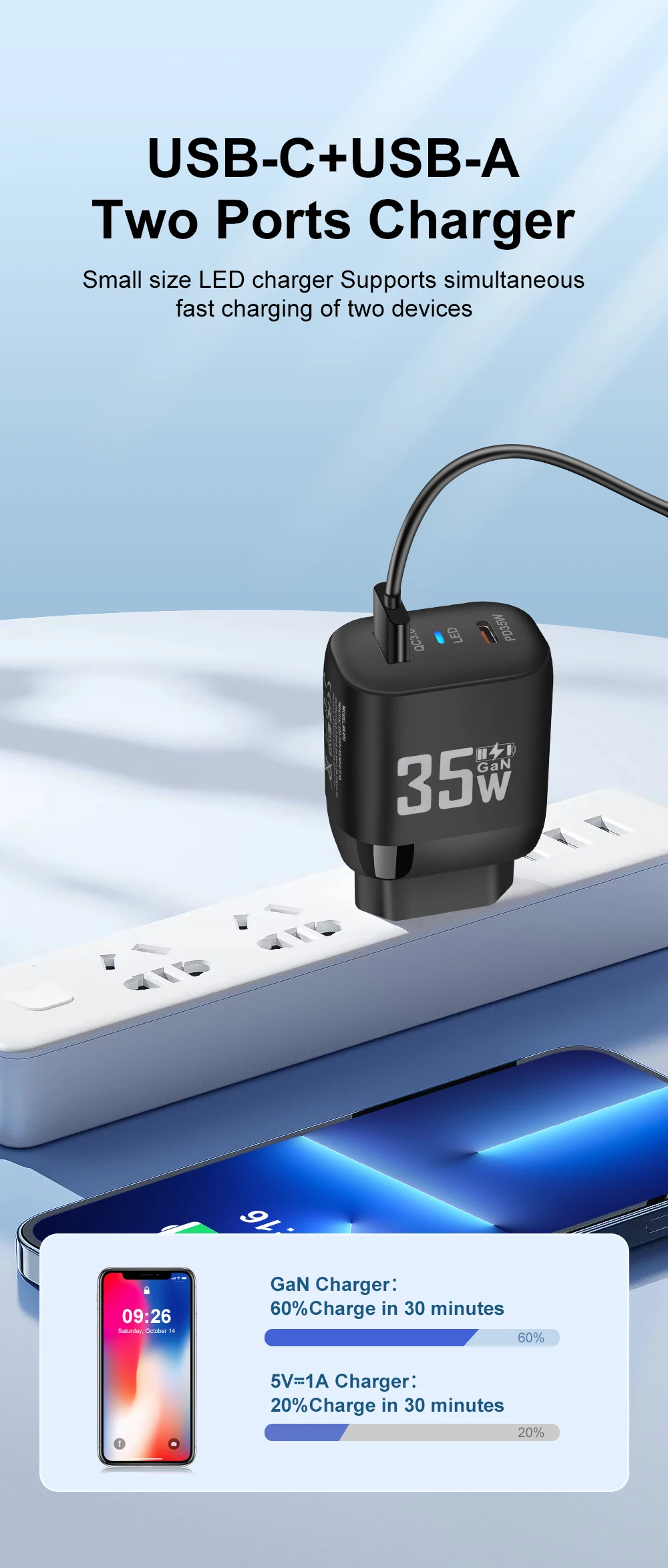 35W GaN Charger Type C Fast Charging QC3.0 For iPhone 15 14 Pro Max Huawei Xiaomi Samsung POCO Tablet USB C Charger PD Adapter
