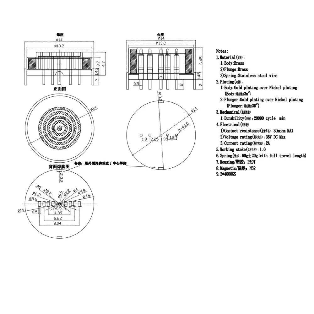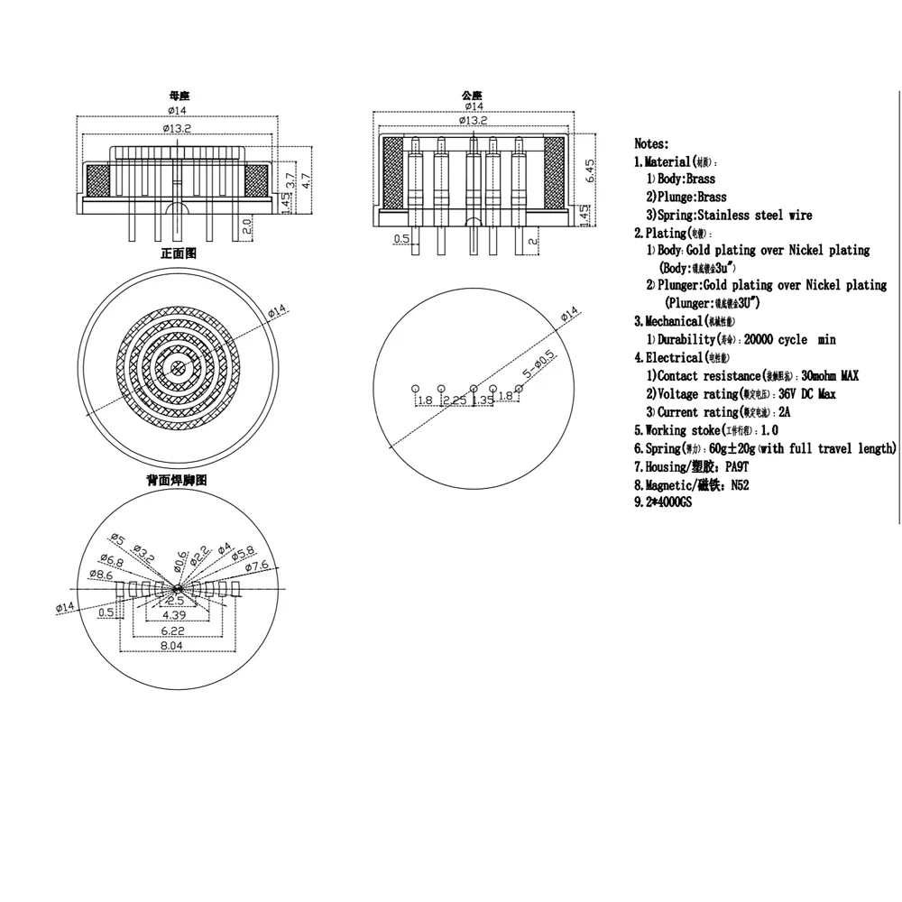 Comprar 360 ° Conector Pin Pogo magnético con forma Circualr, 5 pines con esquinas, sonda macho hembra, 24V, 2A, CC, conectores de enchufe de carga