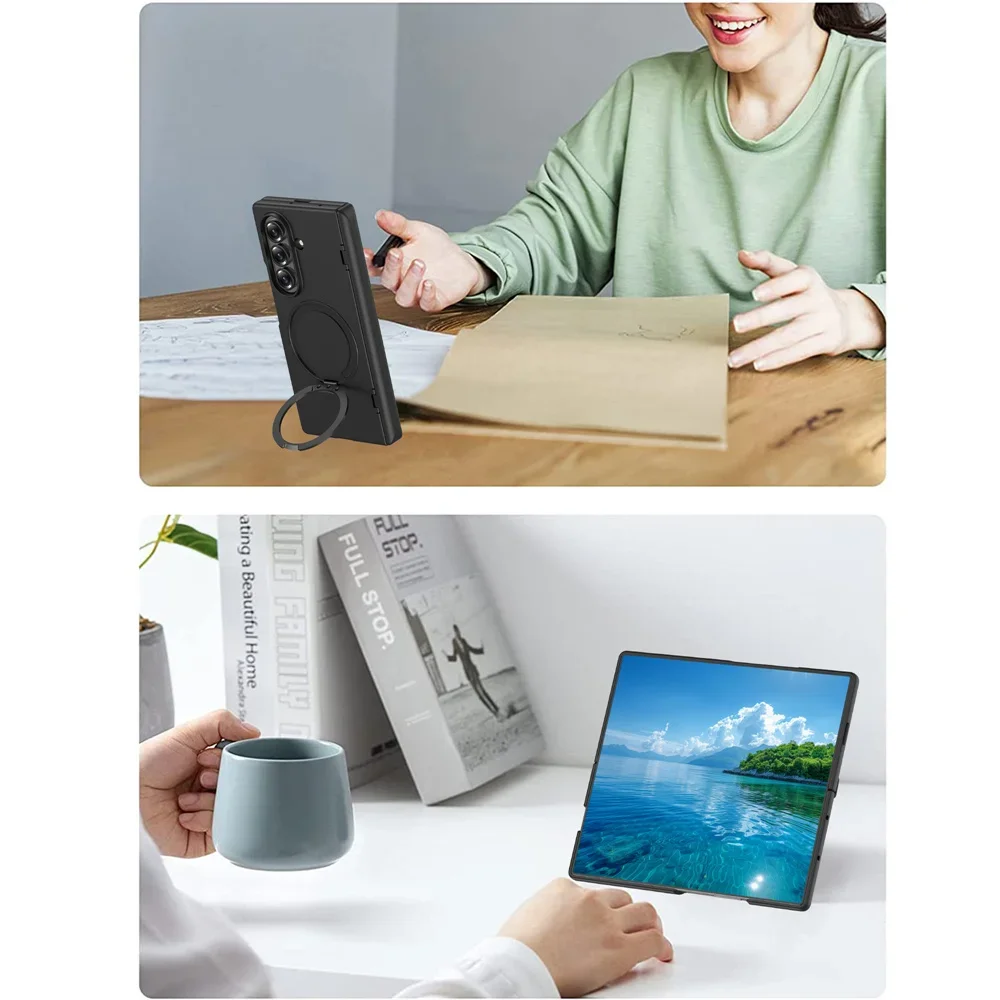 360 ° Funda con soporte de anillo magnético giratorio Macsafe para Magsafe Samsung Galaxy Z Fold 7 Fold7 a prueba de golpes Mag Safe Cover de teléfono