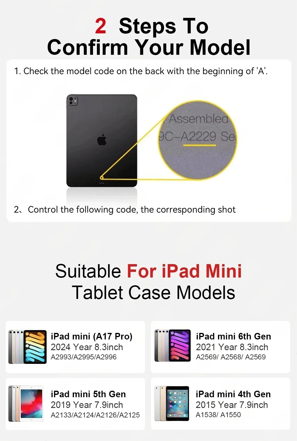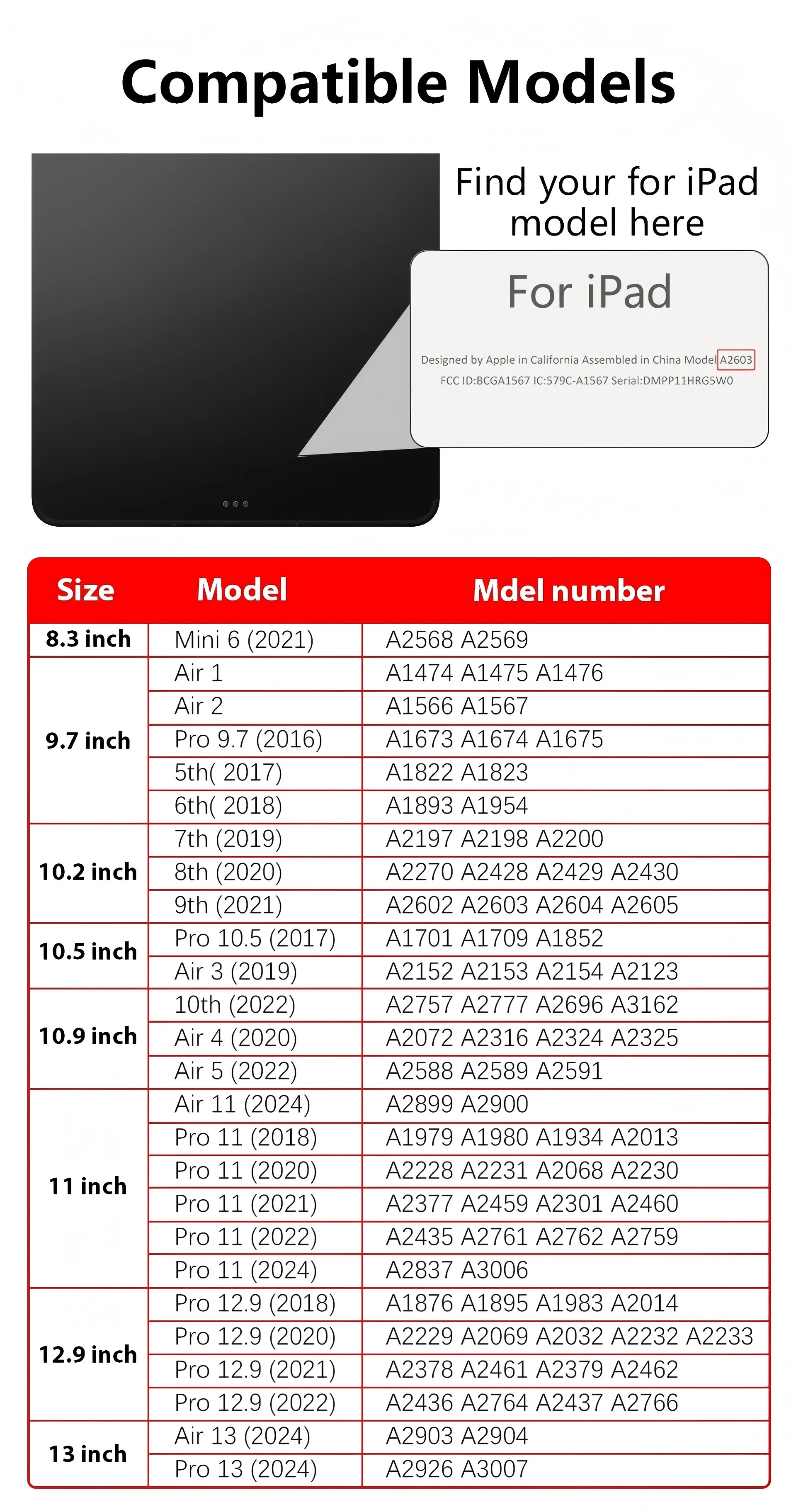 Manera 2Encuentre su número de modelo en letra pequeña en la parte posterior de su iPad.