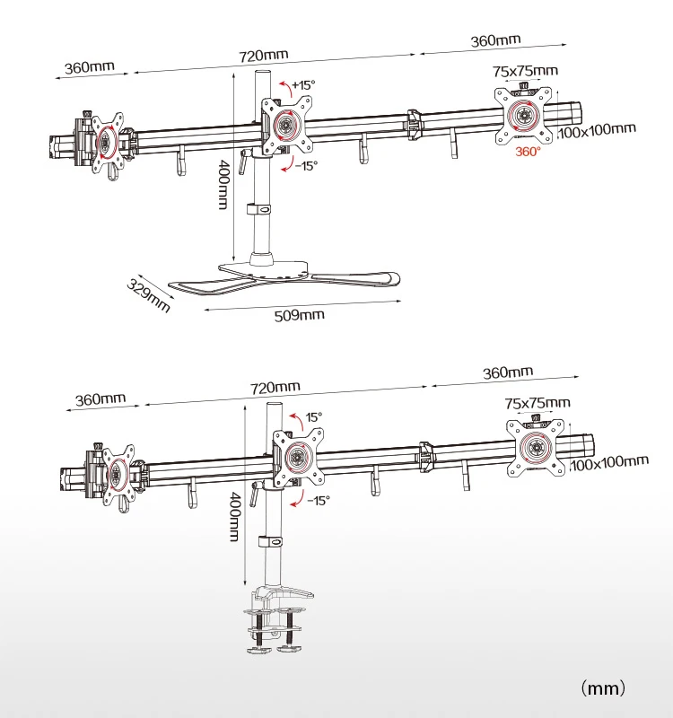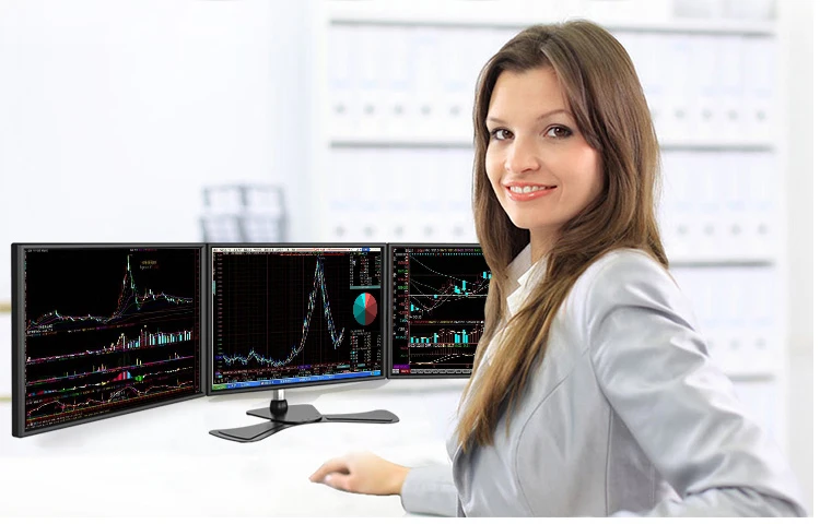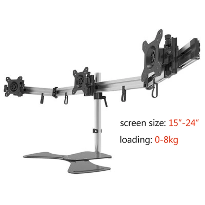 Comprar 360 rotación base grande 10 "-24" 8kg 100x100 aluminio tres brazos de monitor lcd soporte de montaje de escritorio soporte de monitor soporte de pantalla