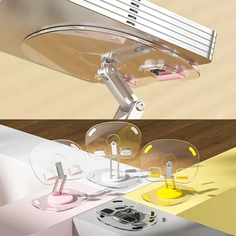 360 ° Soporte giratorio transparente para teléfono móvil, soporte plano multifuncional, soporte retráctil para teléfono móvil, soporte de escritorio