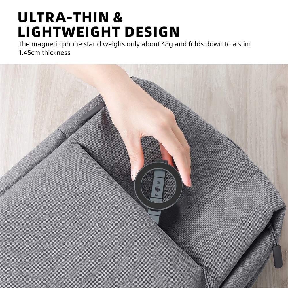 Con un peso de solo unos 48 gy plegado hasta un grosor delgado de 1,45 cm, este soporte para teléfono es perfecto para grabar videos mientras viaja sin agregar volumen a su configuración.