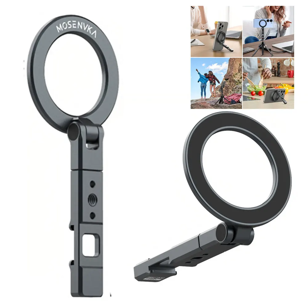 Lleve su grabación de video al siguiente nivel con este audaz soporte magnético para teléfono, diseñado para iPhone compatibles con Magsafe de la serie 12 a 16.Fabricado con aluminio resistente, cuenta con un versátil soporte para trípode de 1/4''-20 y una zapata fría para agregar potentes accesorios.Bloquee su teléfono en su lugar con un fuerte agarre magnético y dé rienda suelta a su creatividad sin límites.Este es el equipo que se atreve a mantenerse al día con tus aventuras de filmación más locas.