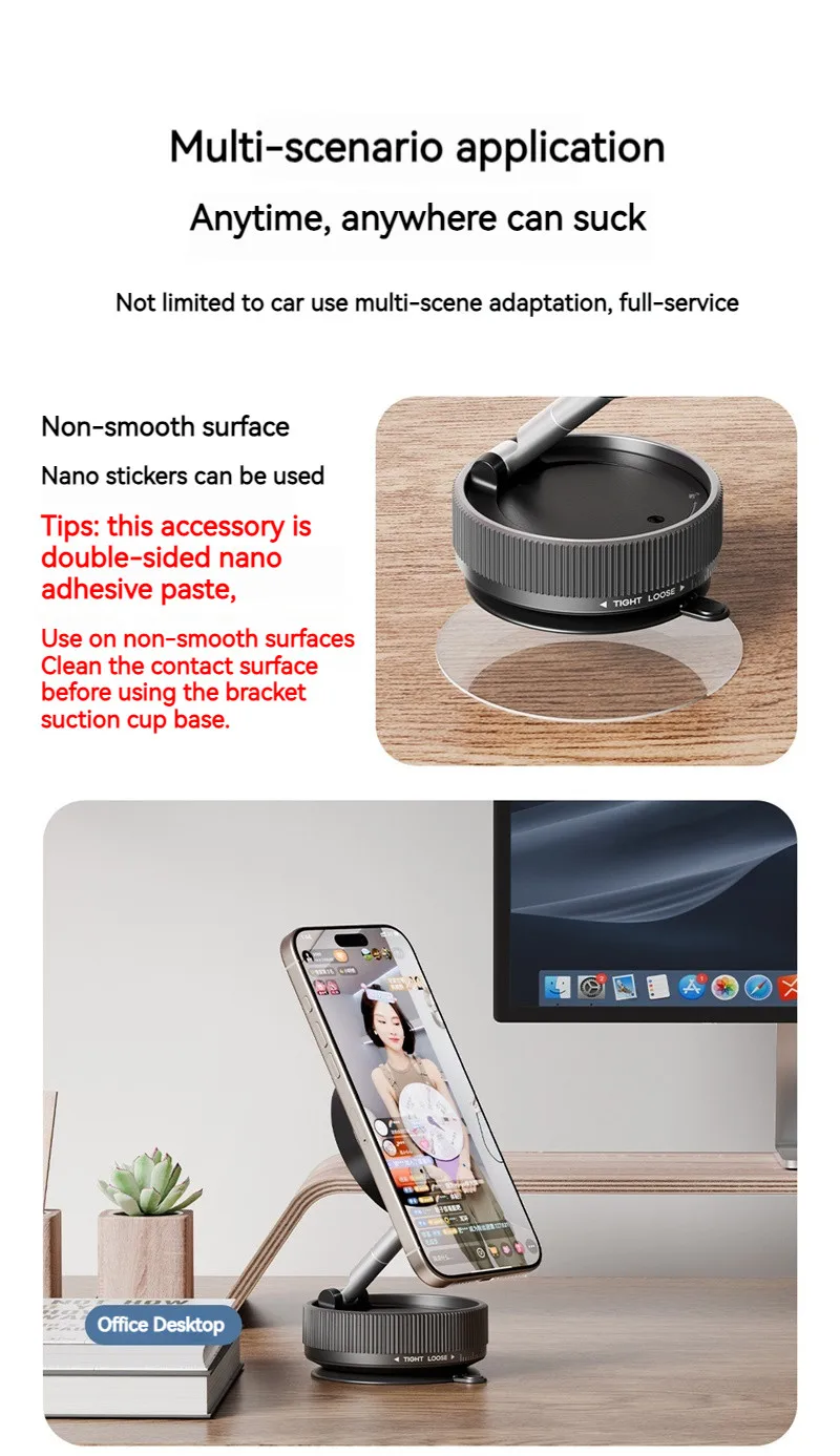 360 ° Soporte magnético para teléfono de coche con rotación al vacío, espejo Universal con ventosa, soporte para ducha de baño y gimnasio para IPhone, Xiaomi y Samsung
