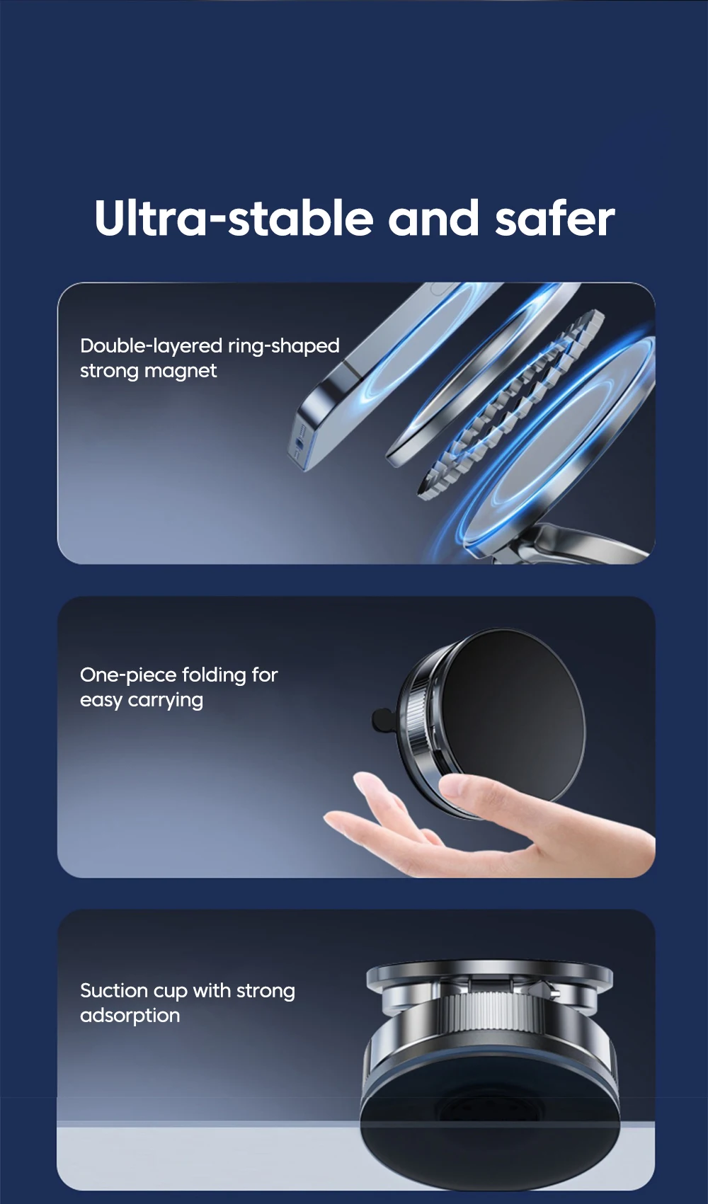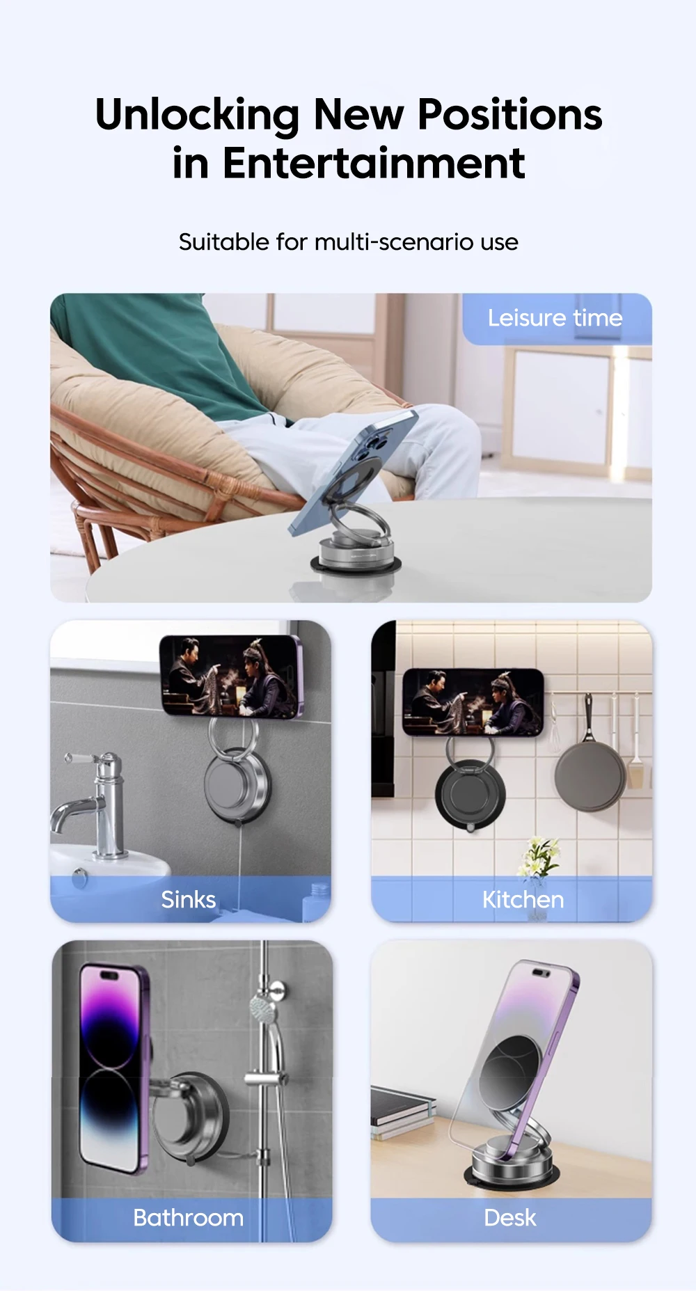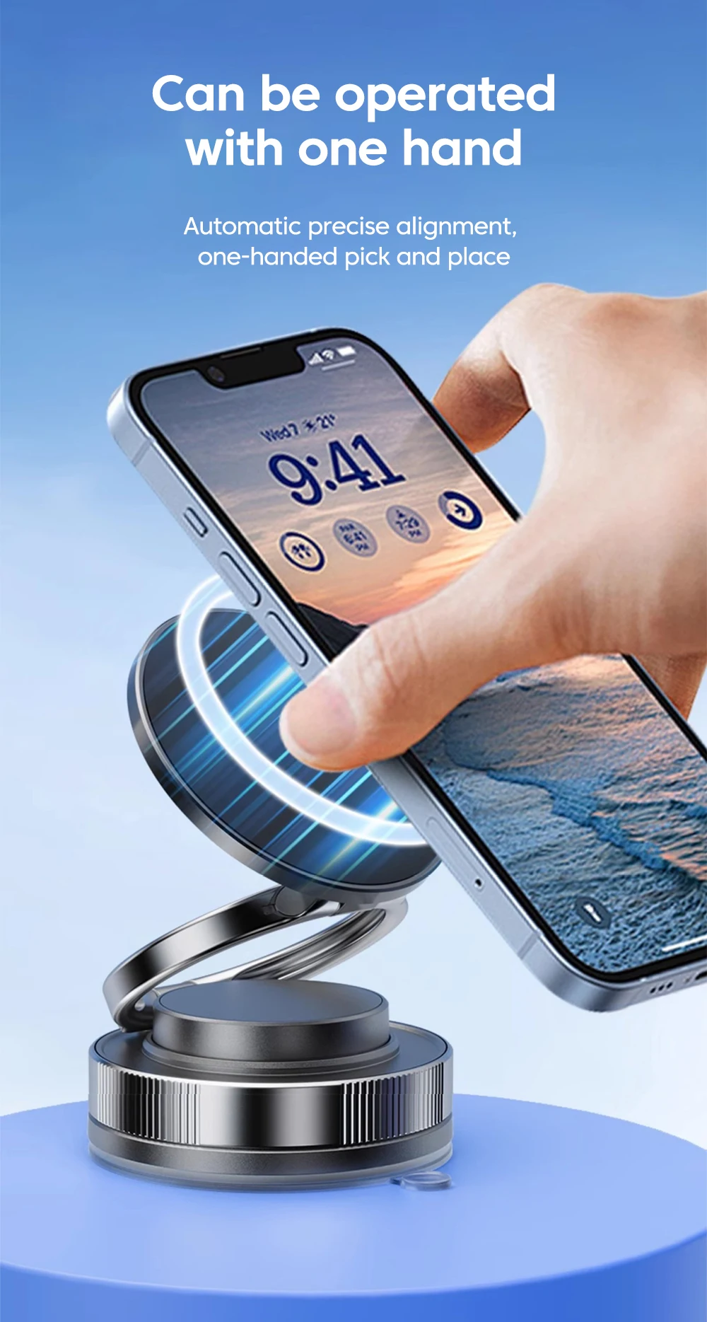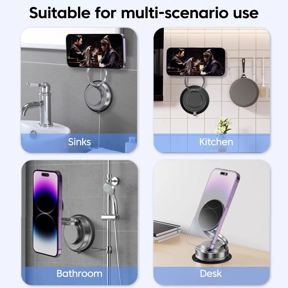 360 ° Soporte magnético para teléfono móvil con rotación al vacío, soporte magnético para teléfono con ventosa, soporte de almacenamiento plegable multifuncional perezoso