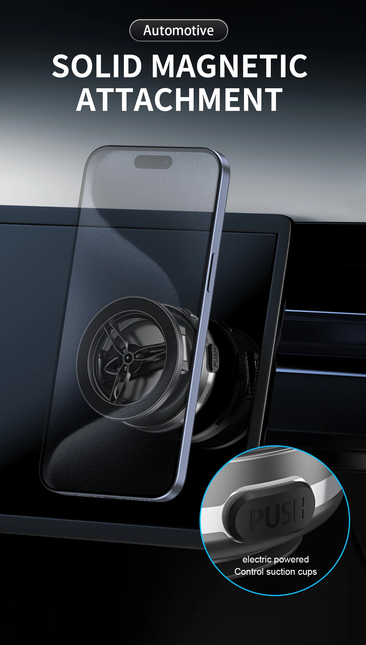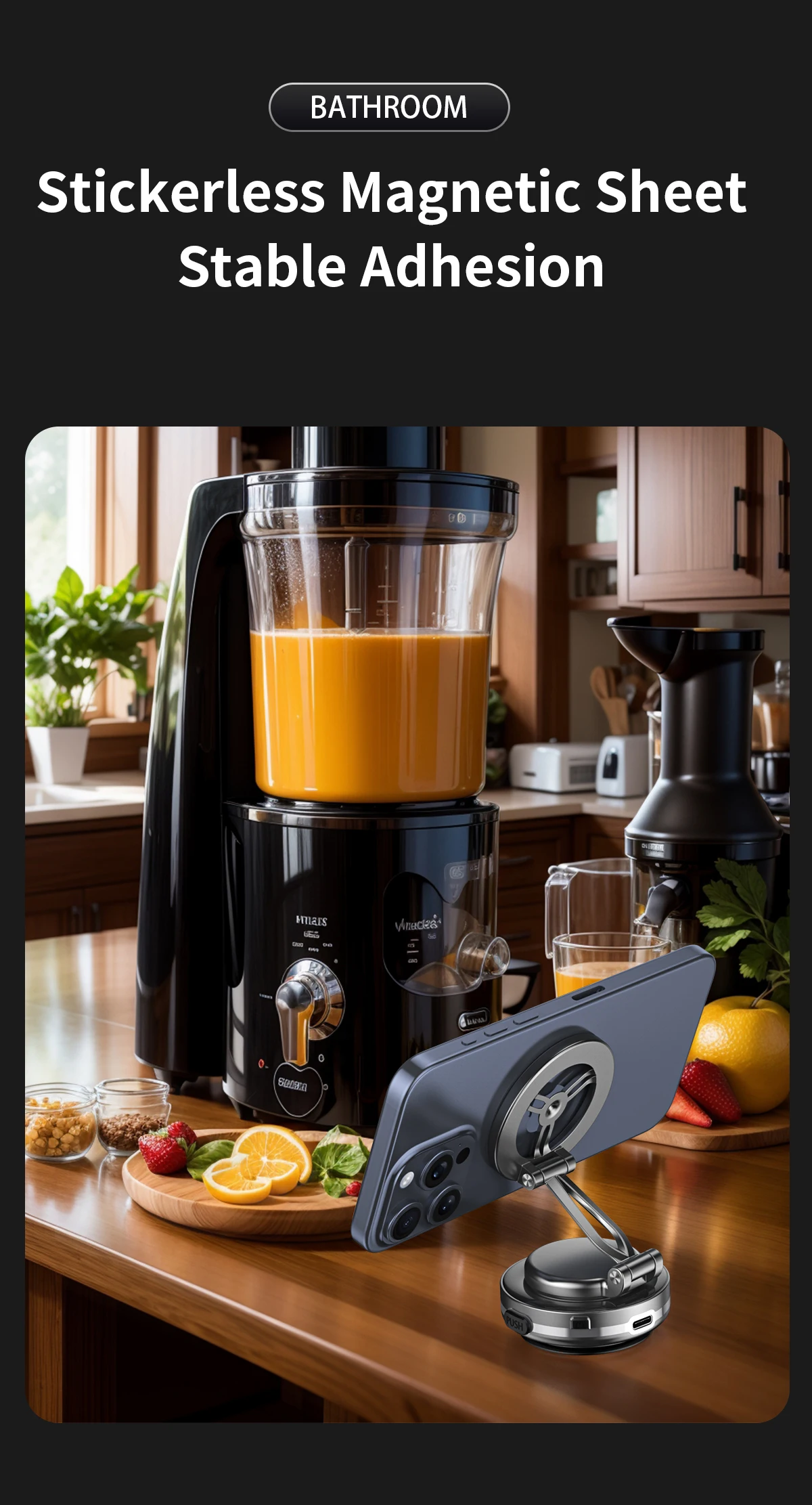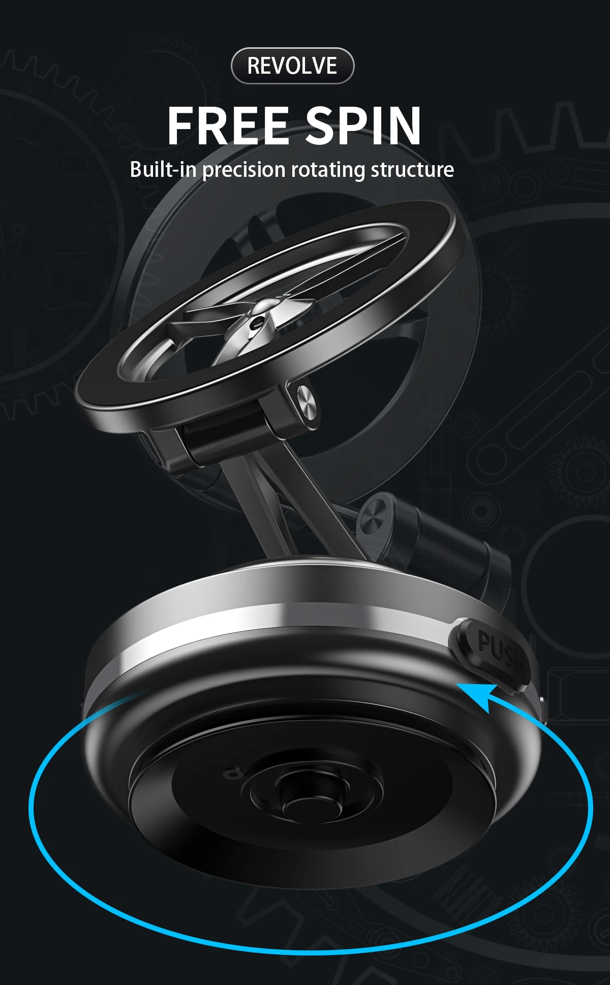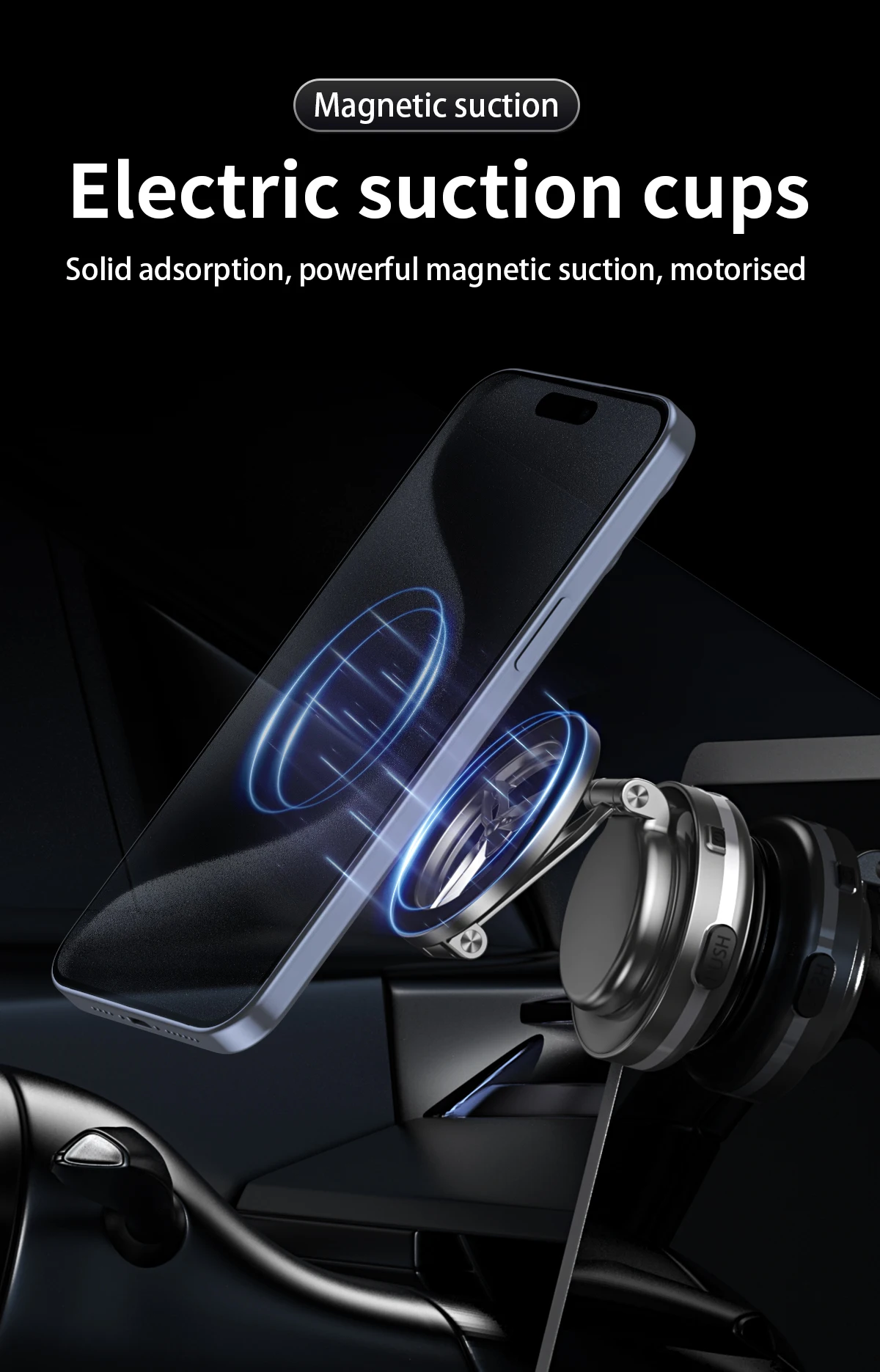 D.Si el soporte del teléfono se cuelga de una pared o en otra posición en un ángulo de 90 grados con respecto al teléfono, el motor interno comenzará a funcionar automáticamente para crear un vacío cuando el sistema de detección de presión detecte una disminución de la presión de la ventosa, lo que puede producir ruido.
