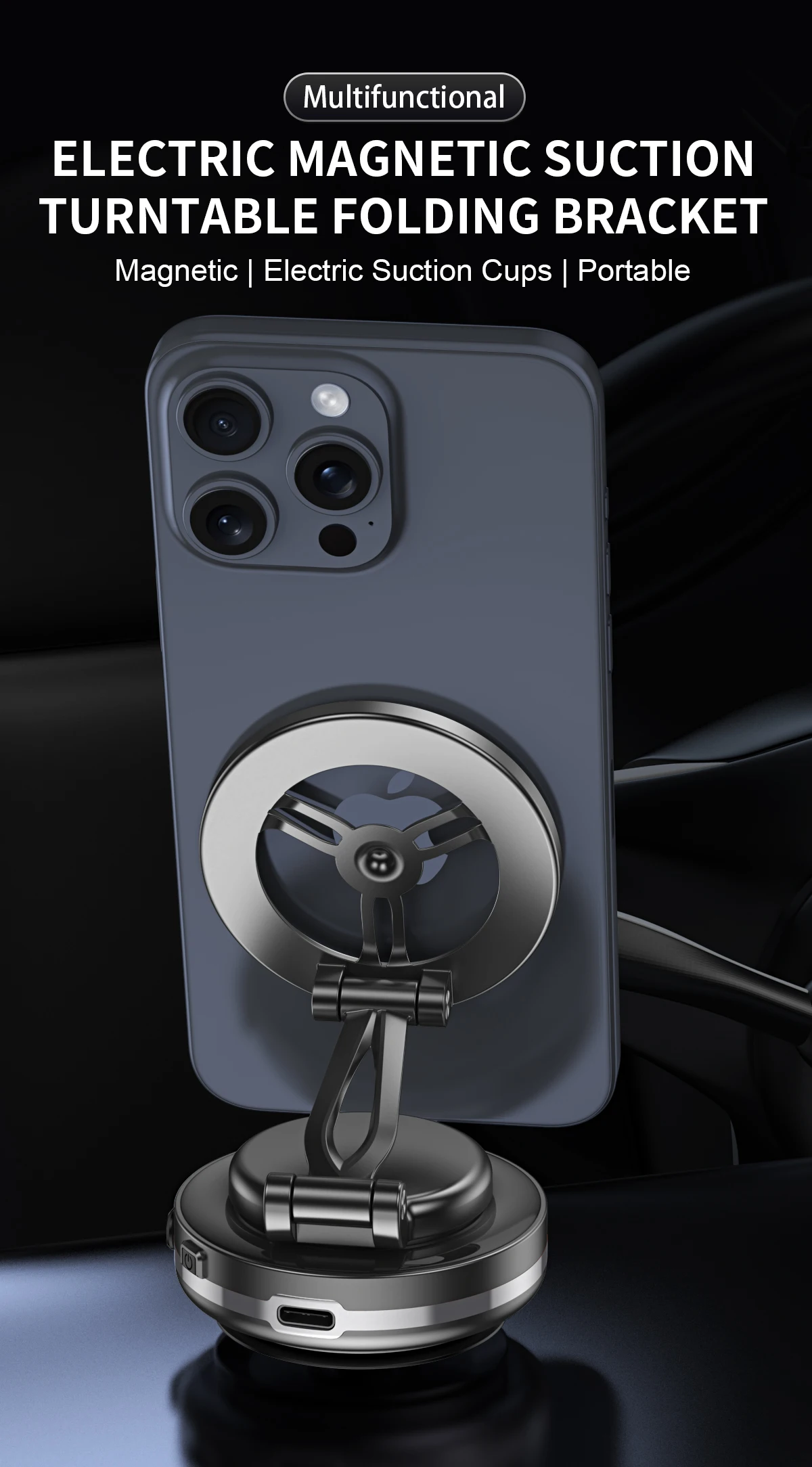 360° Soporte magnético para teléfono con ventosa eléctrica plegable ajustable, soporte magnético para teléfono para espejo de gimnasio de coche, todos los teléfonos