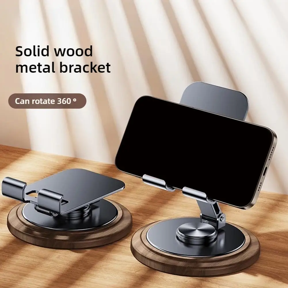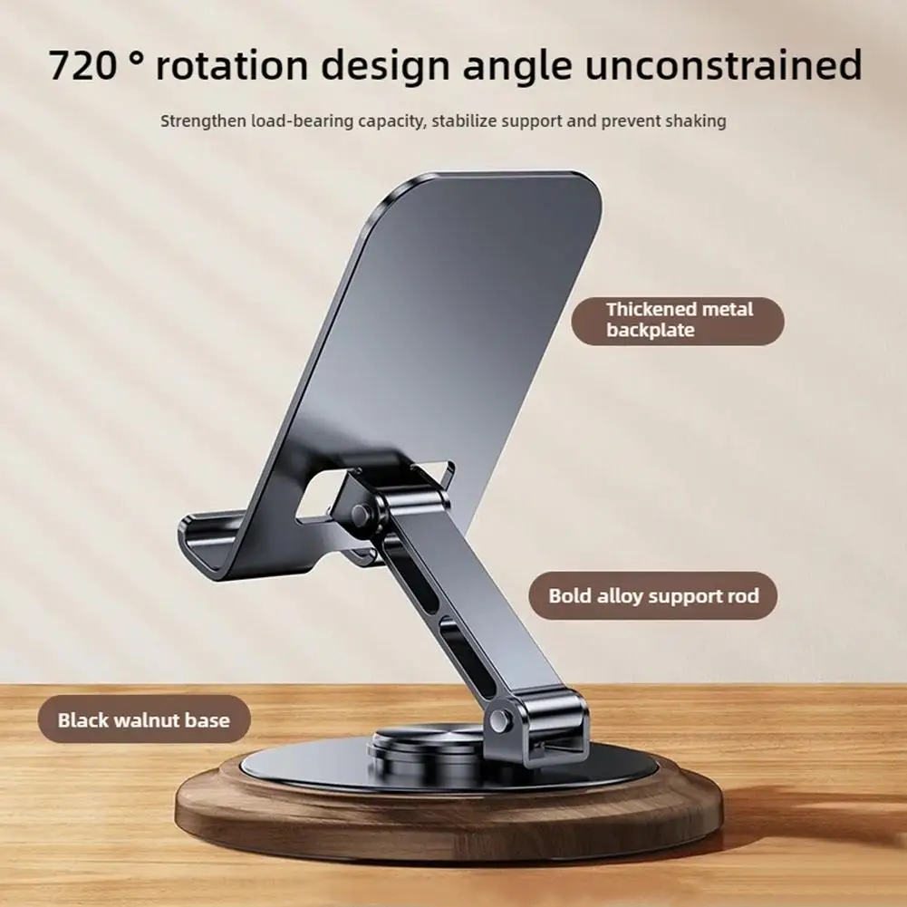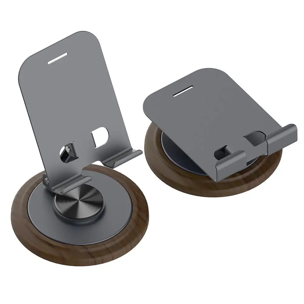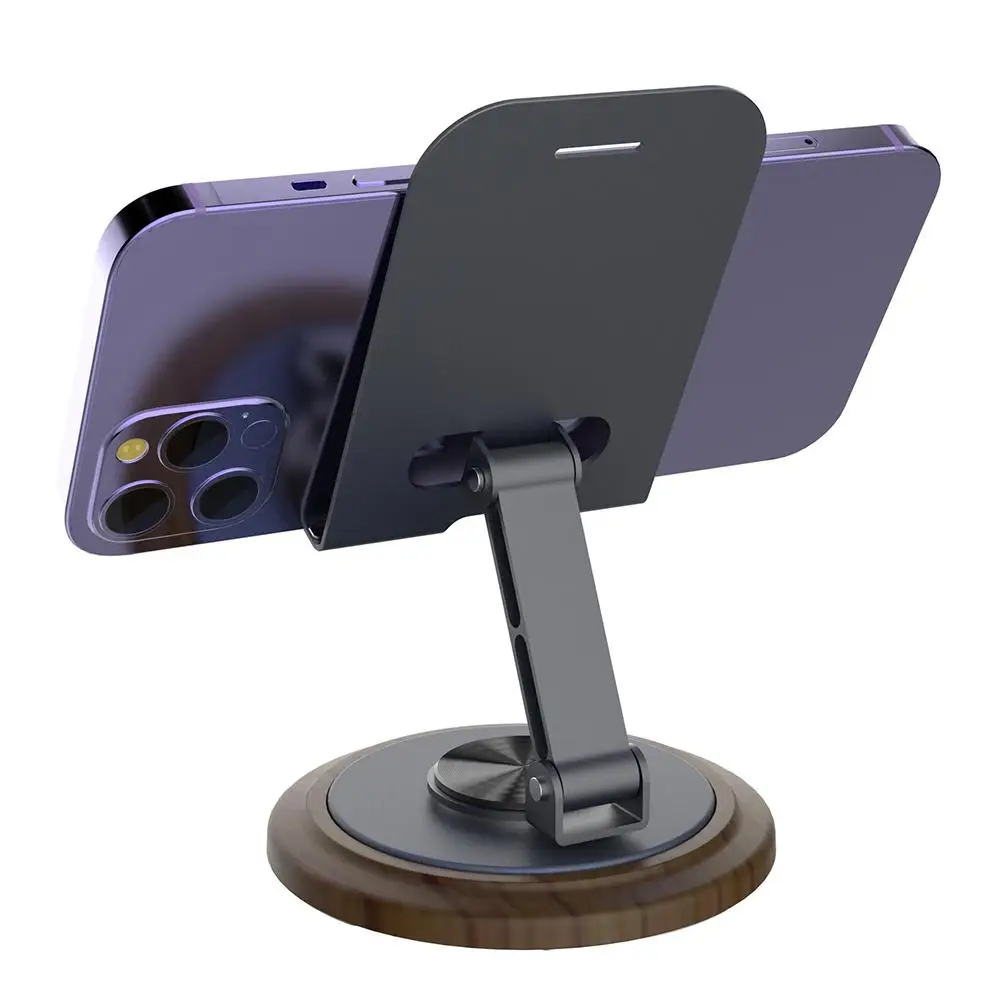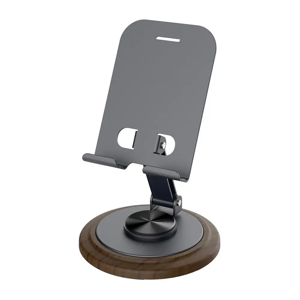1.Soporte giratorio para teléfono móvil de nogal negro + metal: 360° soporte plegable giratorio