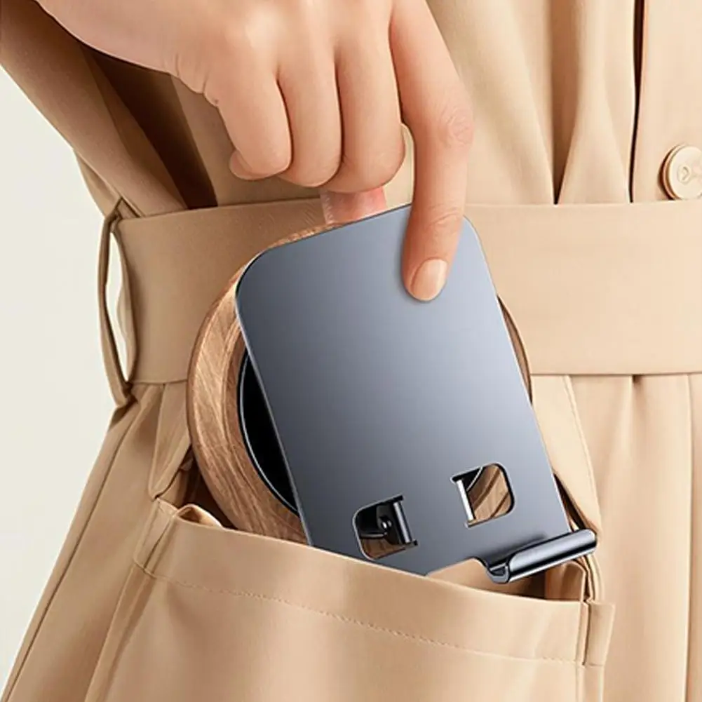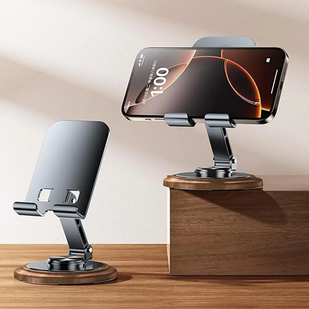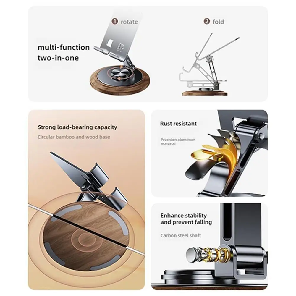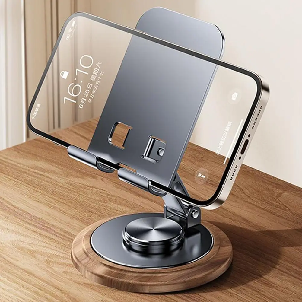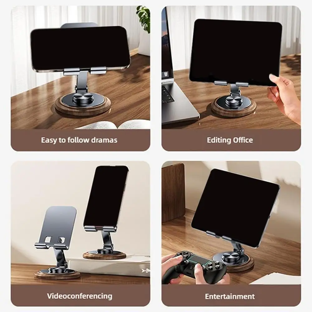 1.Soporte giratorio para teléfono móvil de nogal negro + metal: 360° soporte plegable giratorio