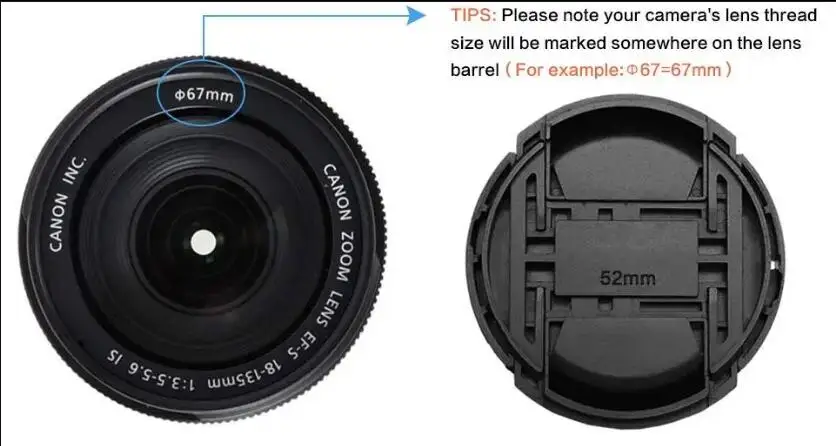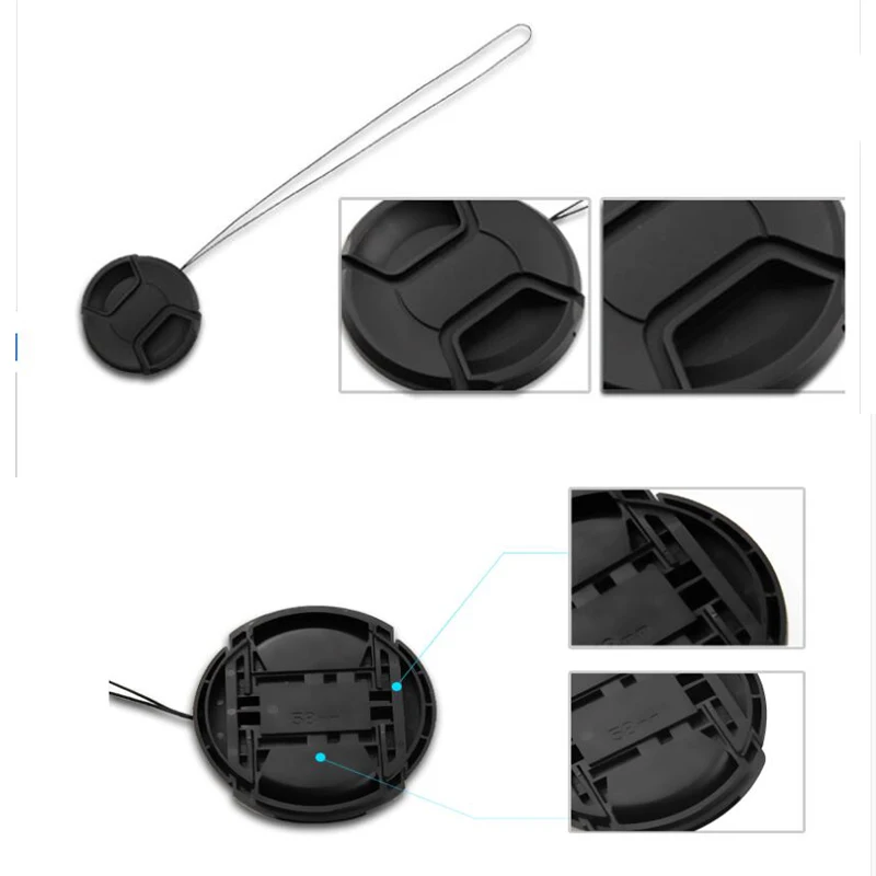 Comprar 37/39/40,5/43/46/49/52/55/58/62/67/72/77/82mm pellizco central Snap-on tapa de lente frontal tapa de lente para cámara canon sony