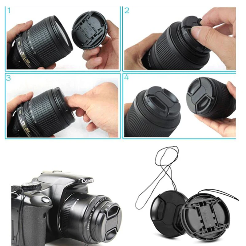 Comprar 37/39/40,5/43/46/49/52/55/58/62/67/72/77/82mm pellizco central Snap-on tapa de lente frontal tapa de lente para cámara canon sony
