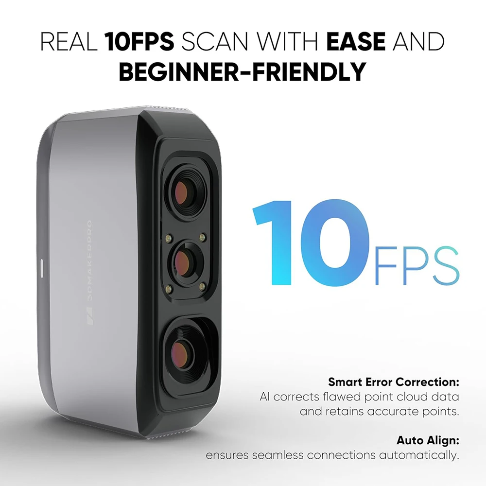 Escáner 3D 3DMakerpro Moose Lite, fuente de luz NIR, precisión de 0,05mm, resolución de 0,10mm, cámara a color de 24 bits, velocidad de fotogramas de 10fps, lentes antivibración, compatible con Windows/MacOS