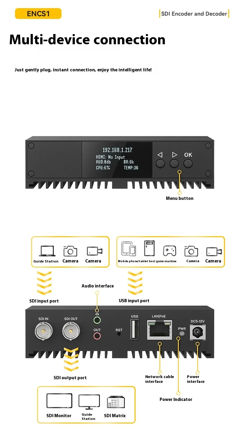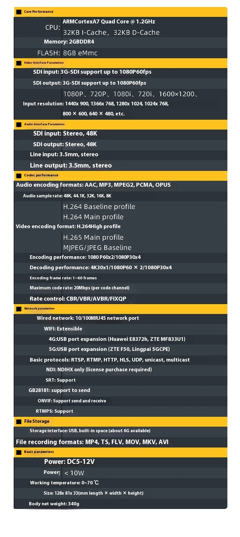 Comprar 3g Sdi Ndi Codec 4k 1080p Srt Rtmp H265 Transmisión en tiempo real Entrada HD Transmisión en vivo multiprotocolo Soporte NDI, RTSP/RTMP/HTTP