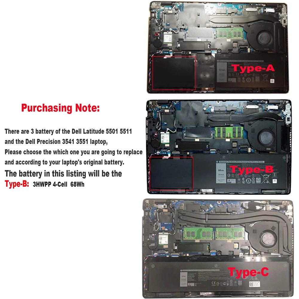 La batería de este listado será el Tipo B: 3HWPP de 4 celdas 68Wh