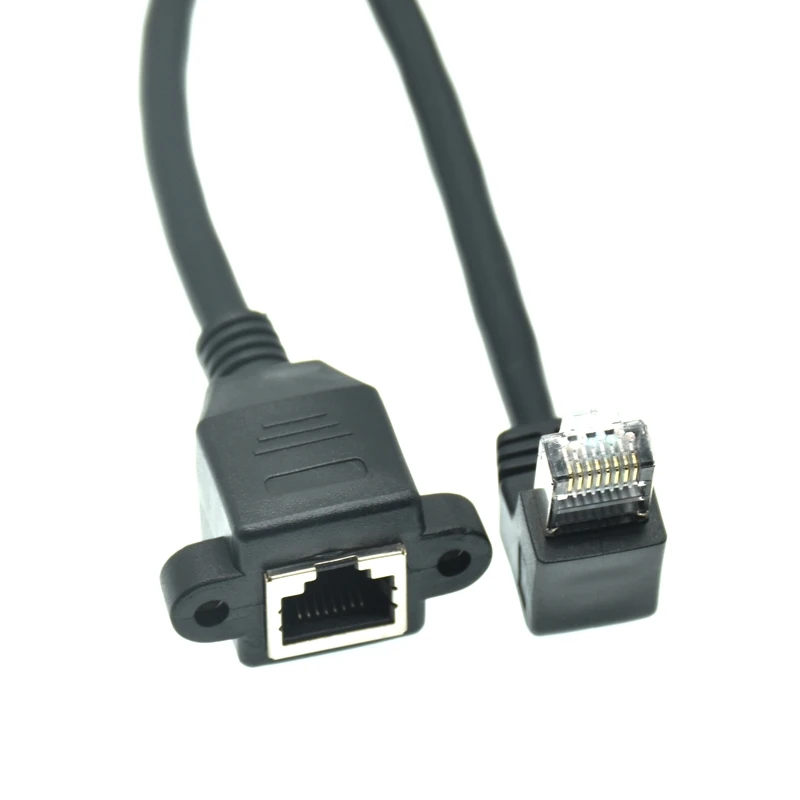 Comprar 3M 30cm 150cm RJ45 macho a hembra Ethernet tornillo de bloqueo montaje en Panel Cable de extensión de red LAN arriba abajo Cable de ángulo derecho