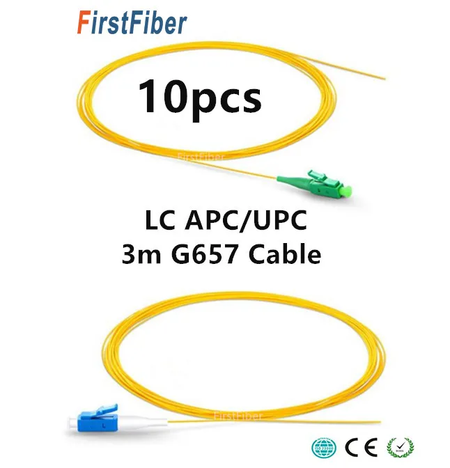 Comprar 3m-coleta de fibra óptica para motocicleta, chaqueta de PVC de 9/125mm, G657A monomodo, APC/UPC, Simplex 0,9, 10 unidades