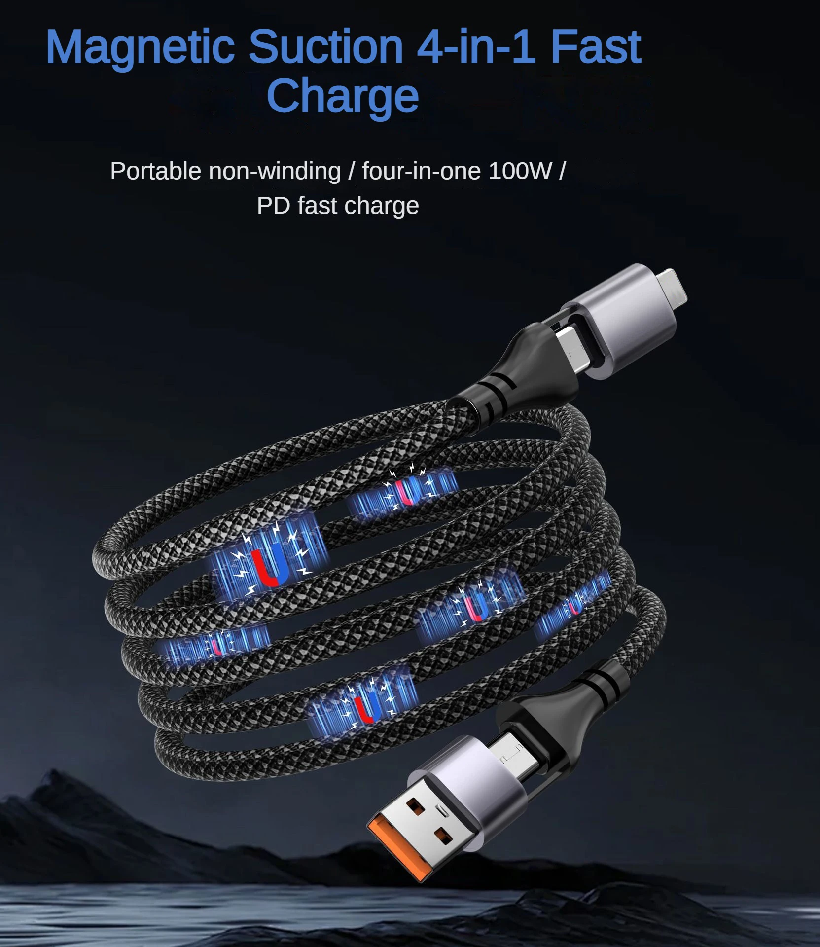 Material: alambre trenzado de nailon + carcasa de TPE + ABS + alambre de cobre + pegamento magnético compuesto