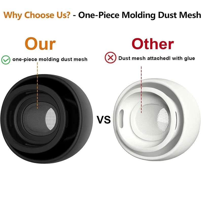 Especificación Modelos aplicables: AirPod pro 1/2 generación Tamaño: L 12,8*7,8 mm M 11,1*7,6 mm S 10,6*7,7mm XS 10,4*7,2 mm Material: silicona líquida Cantidad: 1/2/4 (par)