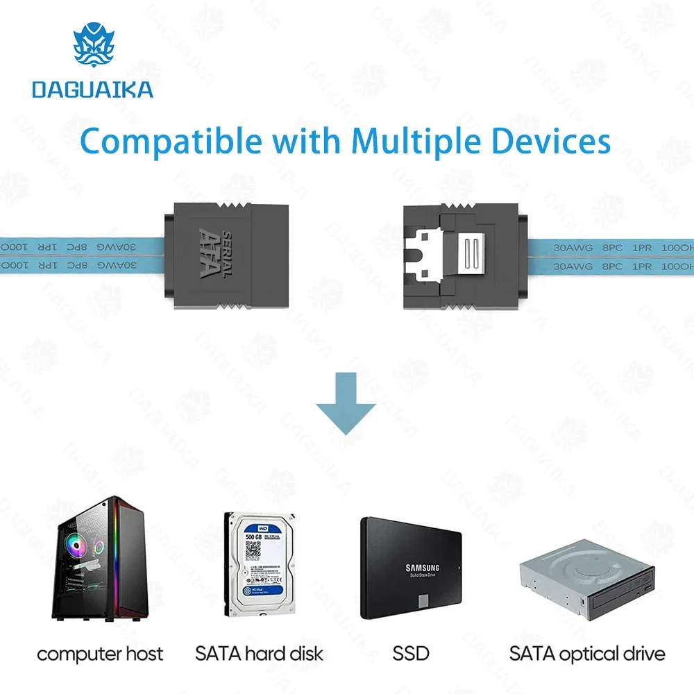 1.6 unids/set de cable sata 3 de 6 GB de media funda se conecta a placas base y controladores de host al escritor CD interno, computadora Bitcoin, discos duros SAS/SATA y controlador de cd ssd HDD, unidades de DVD. Nota: este cable es solo un cable de datos SATA, no proporciona energía para su disco duro.La unidad debe alimentarse por separado