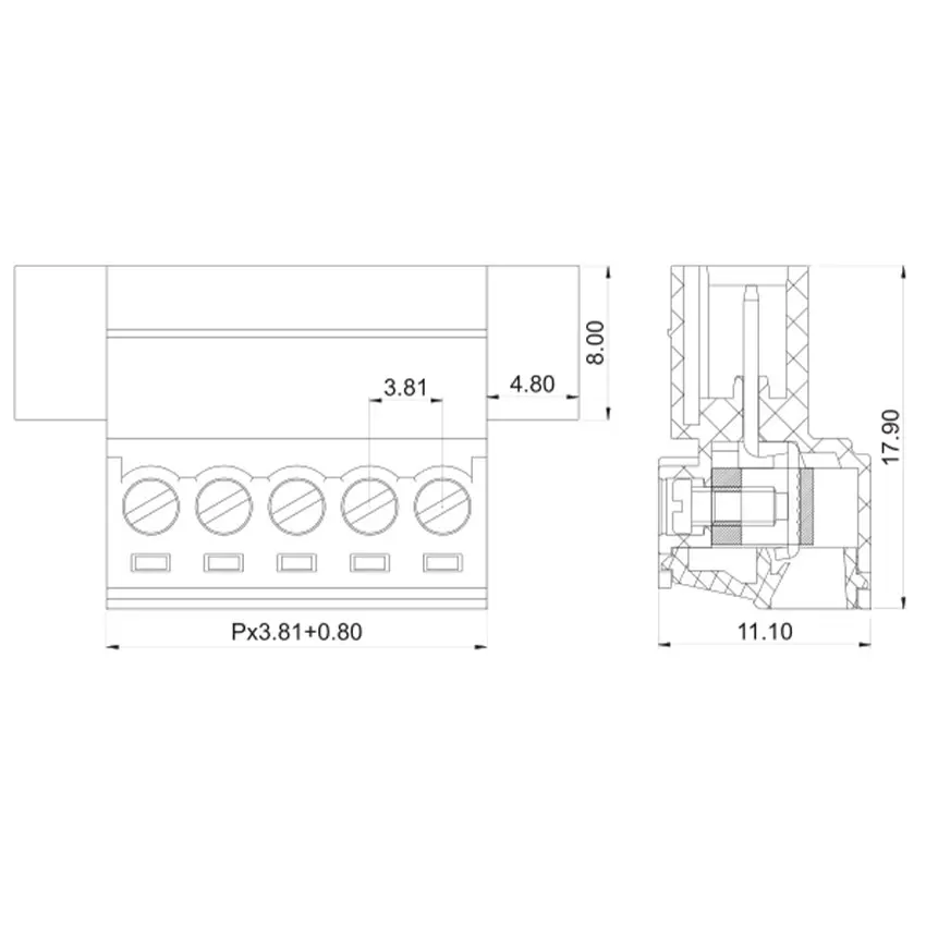 4 juegos 15EDGWC paso 3,81mm 2P/3P/4P/5P/6P/8P/9P conector de bloque de terminales enchufable JM15EDGKM paso 3,81mm
