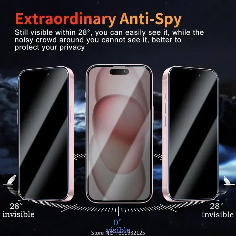 Comprar 4 piezas de vidrio protector de pantalla antiespía de cobertura total para iPhone 11 12 13 14 15 16 Pro Max Plus vidrio templado de privacidad en iPhone 11
