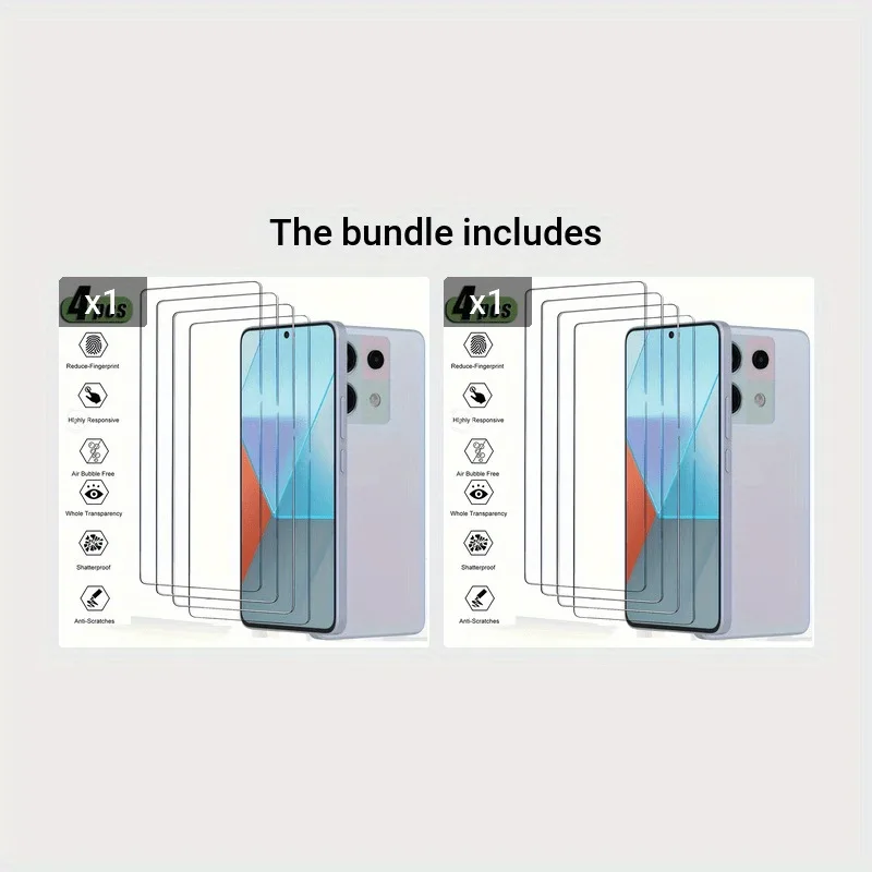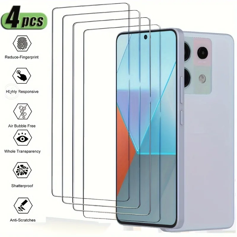 Comprar 4 protectores de pantalla de vidrio templado de dureza 9H para Xiaomi Redmi Note 14 13 Pro 12 11 Pro Note 11S película de vidrio