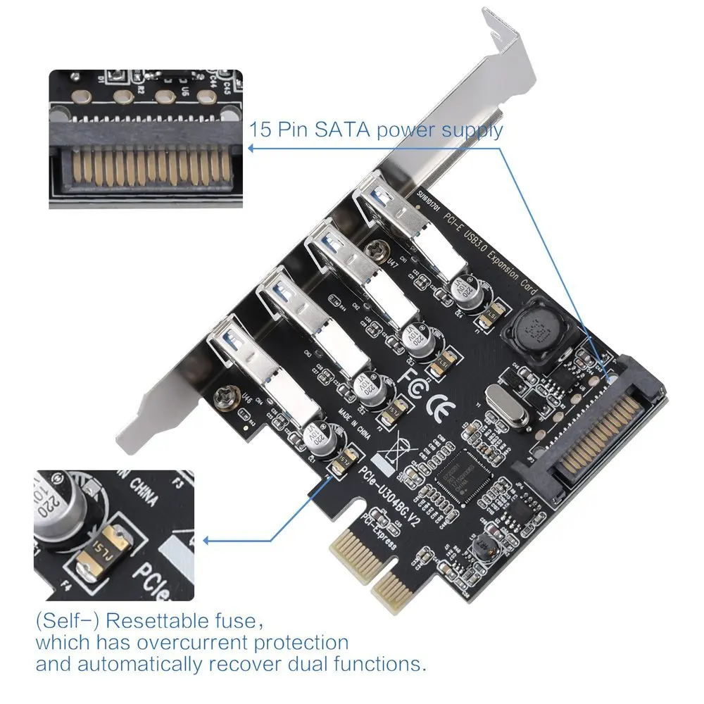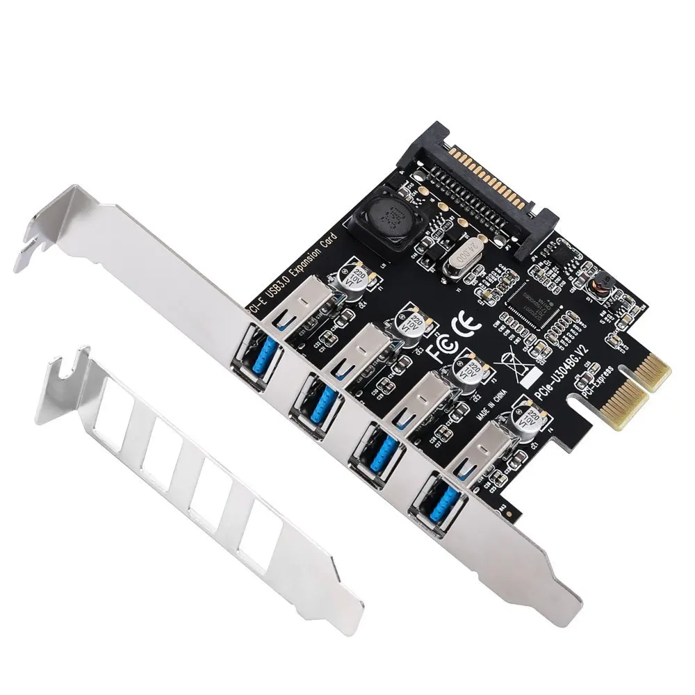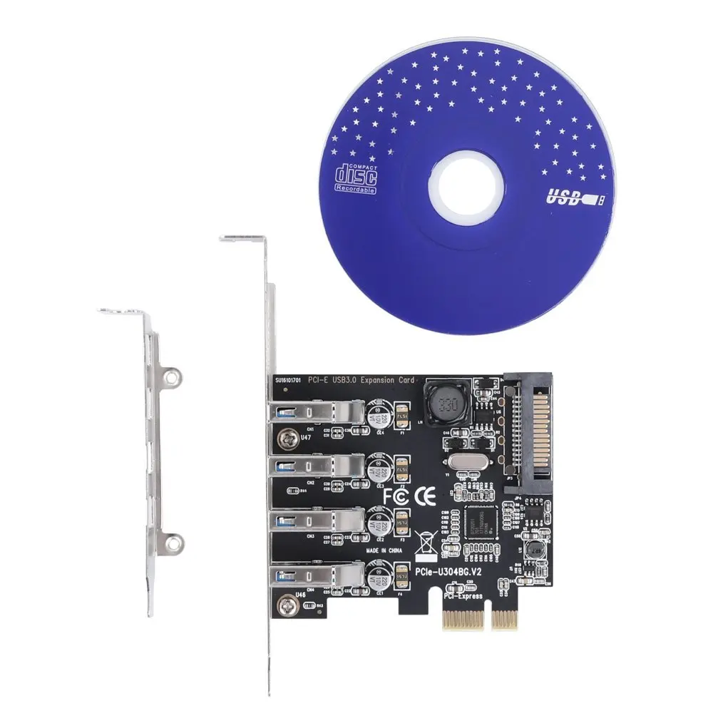 4 puertos USB 3,0 a tarjeta de expansión PCI Express USB 3,0 PCI-e Controller Hub para PC de escritorio con soporte de perfil bajo de 8 cm