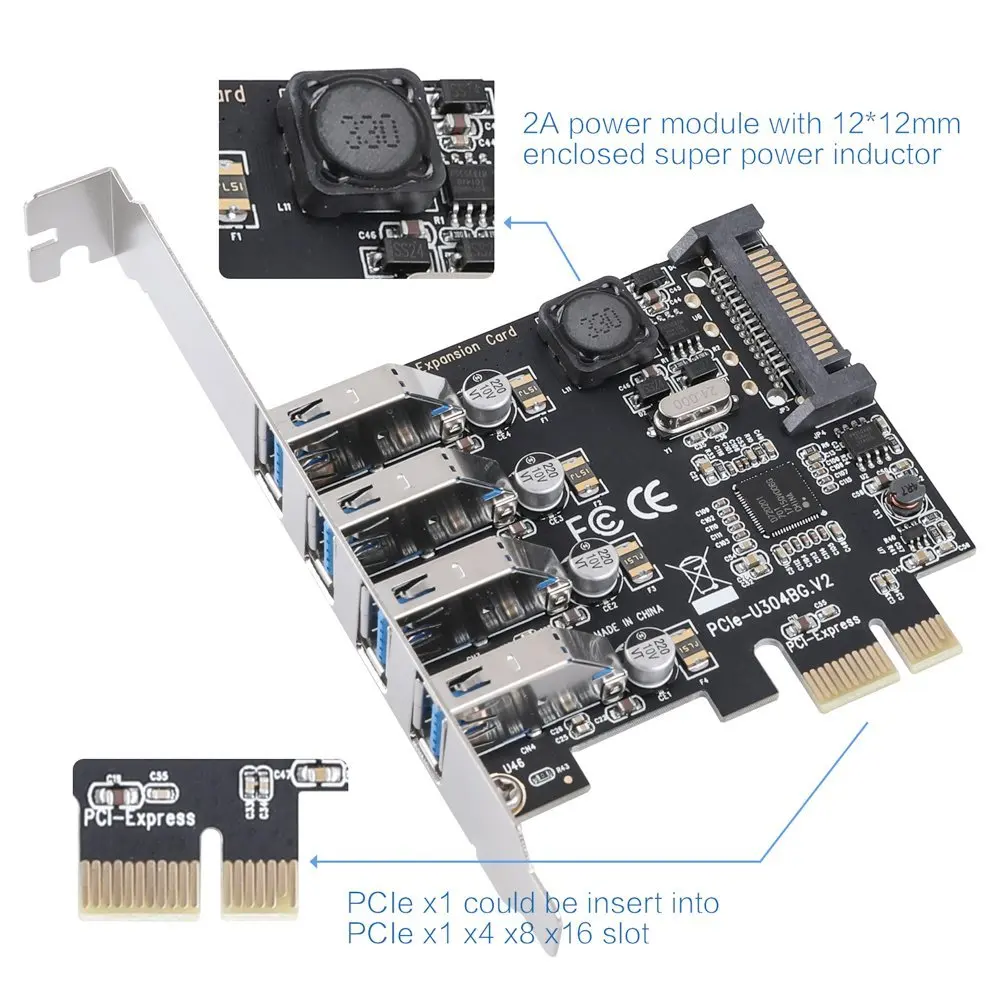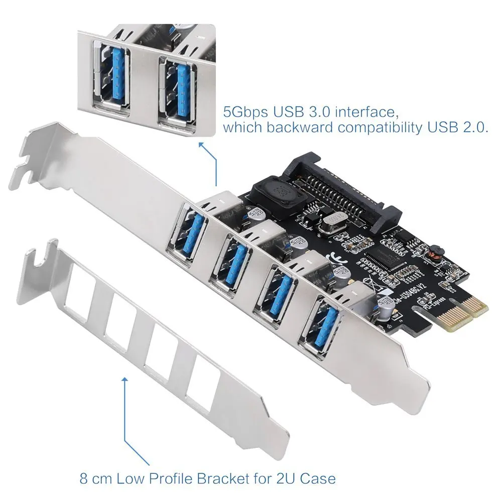 Comprar 4 puertos USB 3,0 a Tarjeta de expansión PCI Express, concentrador de controlador USB 3,0 PCI-e para PC de escritorio con soporte de perfil bajo de 8 cm, Hub pcie
