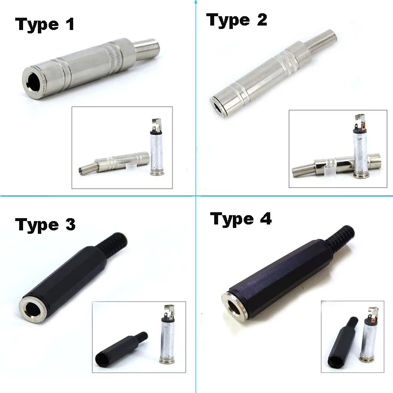 Tipo.2: Enchufe de soldadura estéreo hembra de metal de 6,35 mm y 6,5 mm, 3 polos