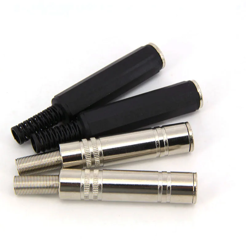 Comprar 4 tipos de Audio mono/estéreo Metal 6,35mm 6,5 hembra 1/4 "enchufe conector enchufe soldadura adaptador soldado 6,35mm para KTV