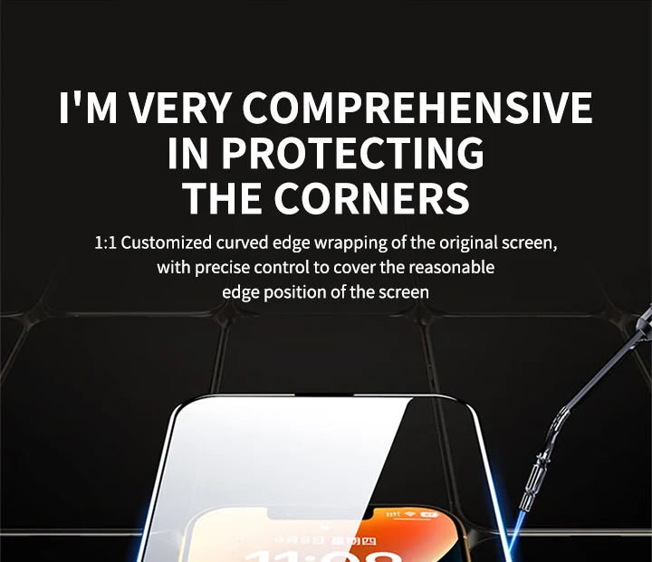 4.Presione el borde del protector de pantalla para que se adhiera firmemente a su teléfono (muy importante)