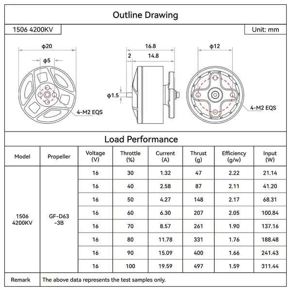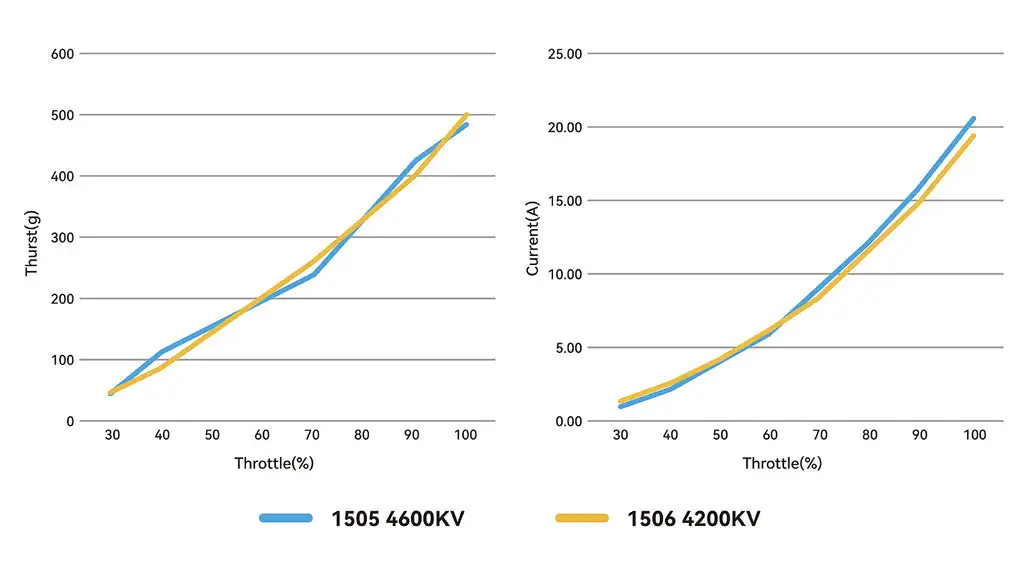 En comparación con el motor sin escobillas 1505 4600 KV, cuenta con un aumento de 15 g en el empuje máximo, lo que garantiza una potencia de salida más suave y eficiente al tiempo que conserva energía y mejora la experiencia general de vuelo de los pilotos.