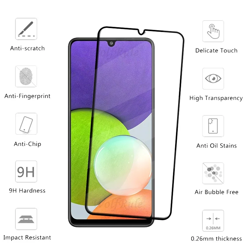 Comprar 4 Uds cubierta completa de vidrio para Samsung A22 vidrio Samsung Galaxy A22 vidrio templado cubierta de pegamento completo 9H Protector de pantalla Samsung A22 4G