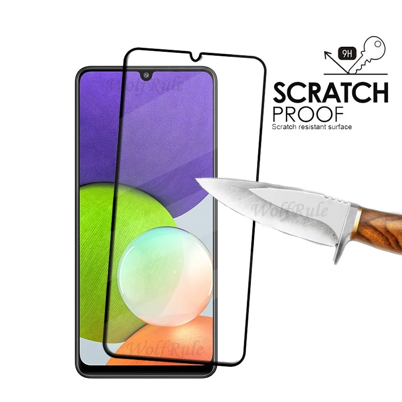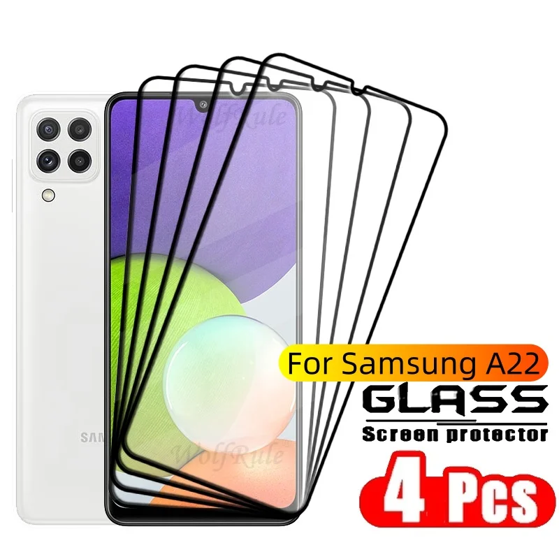 Comprar 4 Uds cubierta completa de vidrio para Samsung A22 vidrio Samsung Galaxy A22 vidrio templado cubierta de pegamento completo 9H Protector de pantalla Samsung A22 4G