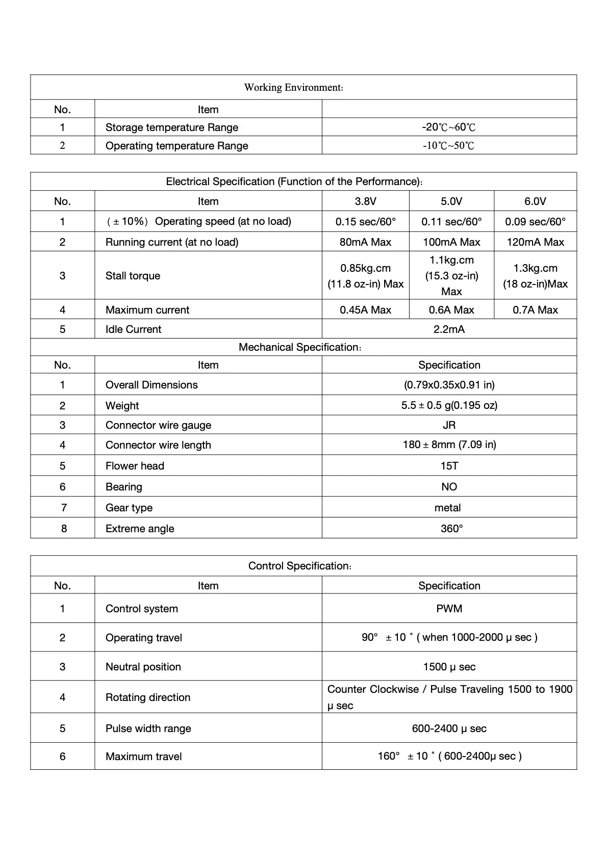 Grandes servos pequeños. Funciona muy bien. El peso es de aproximadamente 5,7 g con un brazo.