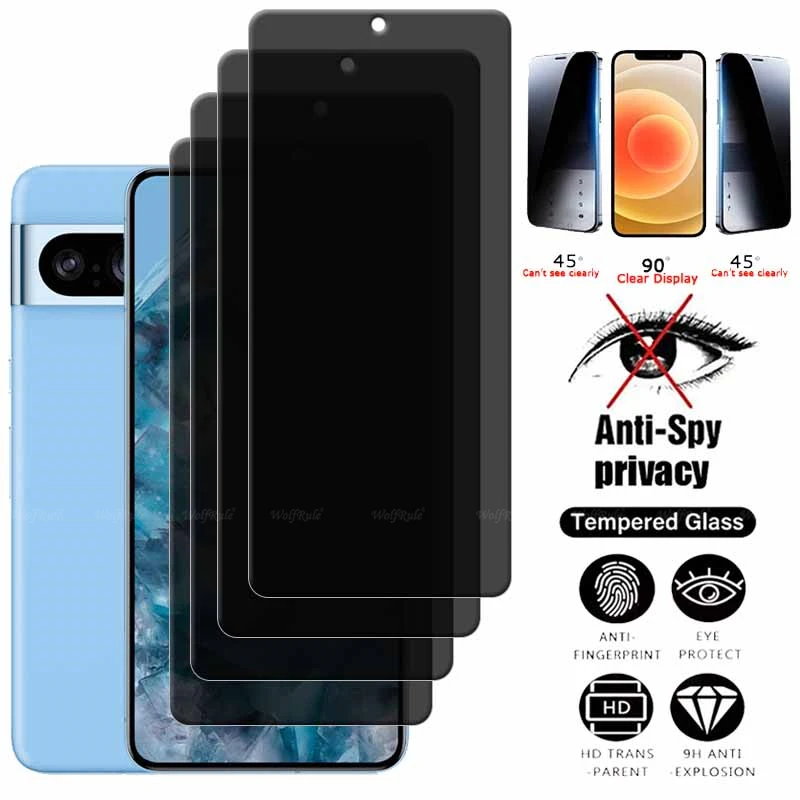 Comprar 4 Uds para Google Pixel 8 Pro vidrio Google Pixel8 Pixel 8 Pro vidrio 9H privacidad Anti-espía pegamento Protector de pantalla Google Pixel 8 Pro