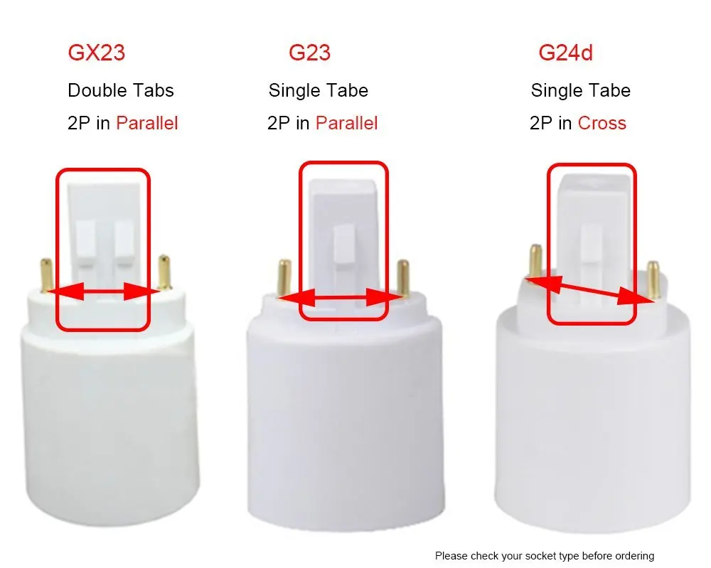 2 uds GX23 a E26 E27 CFL GX23-2 a Edison tornillo luz casquillo portalámparas LED convertidor adaptador de Base de bombilla (2P en paralelo, doble pestaña)Le permite instalar lámparas E26 E27 de tornillo ampliamente utilizadas en un casquillo de luz CFL GX23