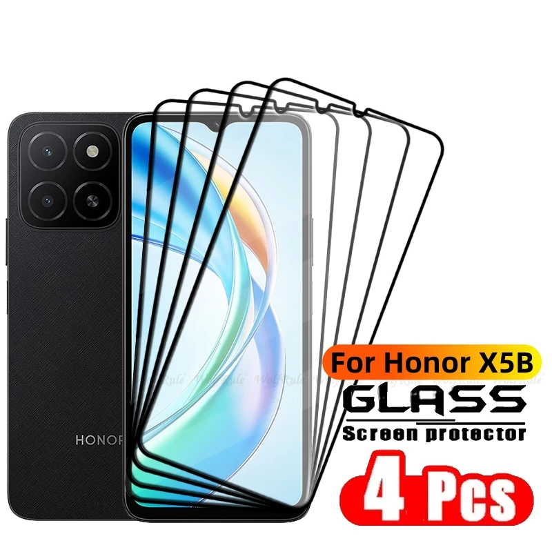Comprar 4 Uds para Honor X5B Glass Honor X5B vidrio templado Protector de teléfono cubierta completa pegamento 9H HD para Protector de pantalla Huawei Honor X5B