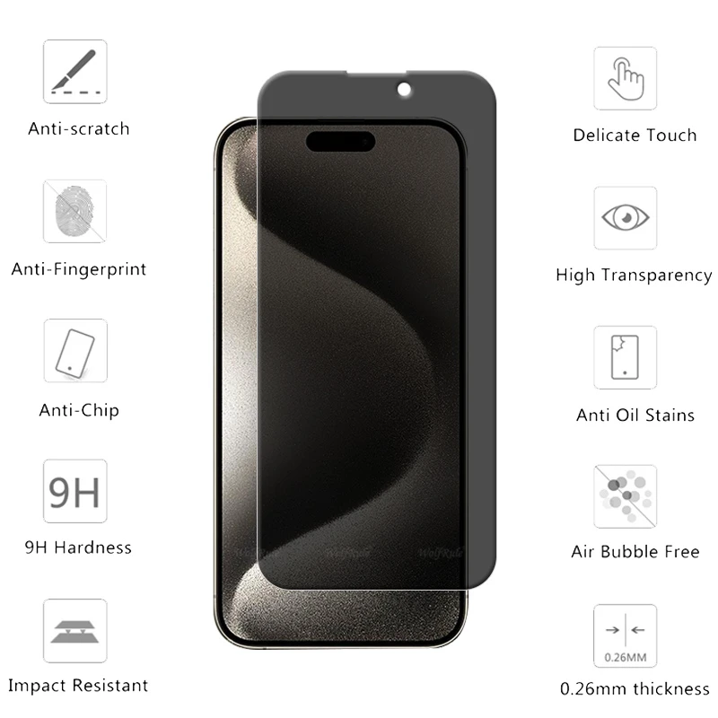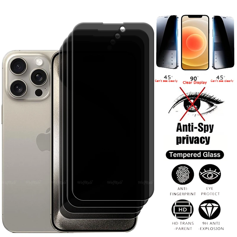 Comprar 4 Uds para iPhone 15 Pro Max vidrio iPhone 15 Plus vidrio templado privacidad Anti-espía cubierta de teléfono pegamento Protector de pantalla iPhone 15 Pro