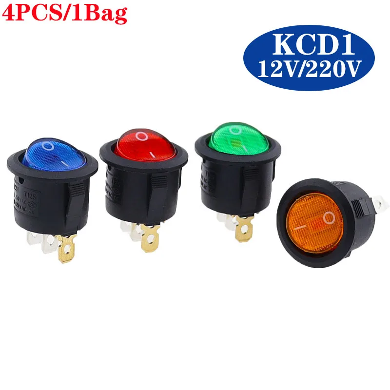 Comprar 4 Uds KCD1 5V-12V / 220v interruptor basculante redondo de encendido/apagado LED iluminado salpicadero de coche tablero barco Van con luz