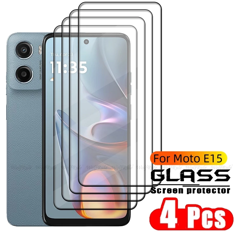 Comprar 4 Uds para Moto E15 vidrio Motorola Moto E15 E 15 Protector de vidrio templado cobertura completa pegamento 9H Protector de pantalla Moto E15