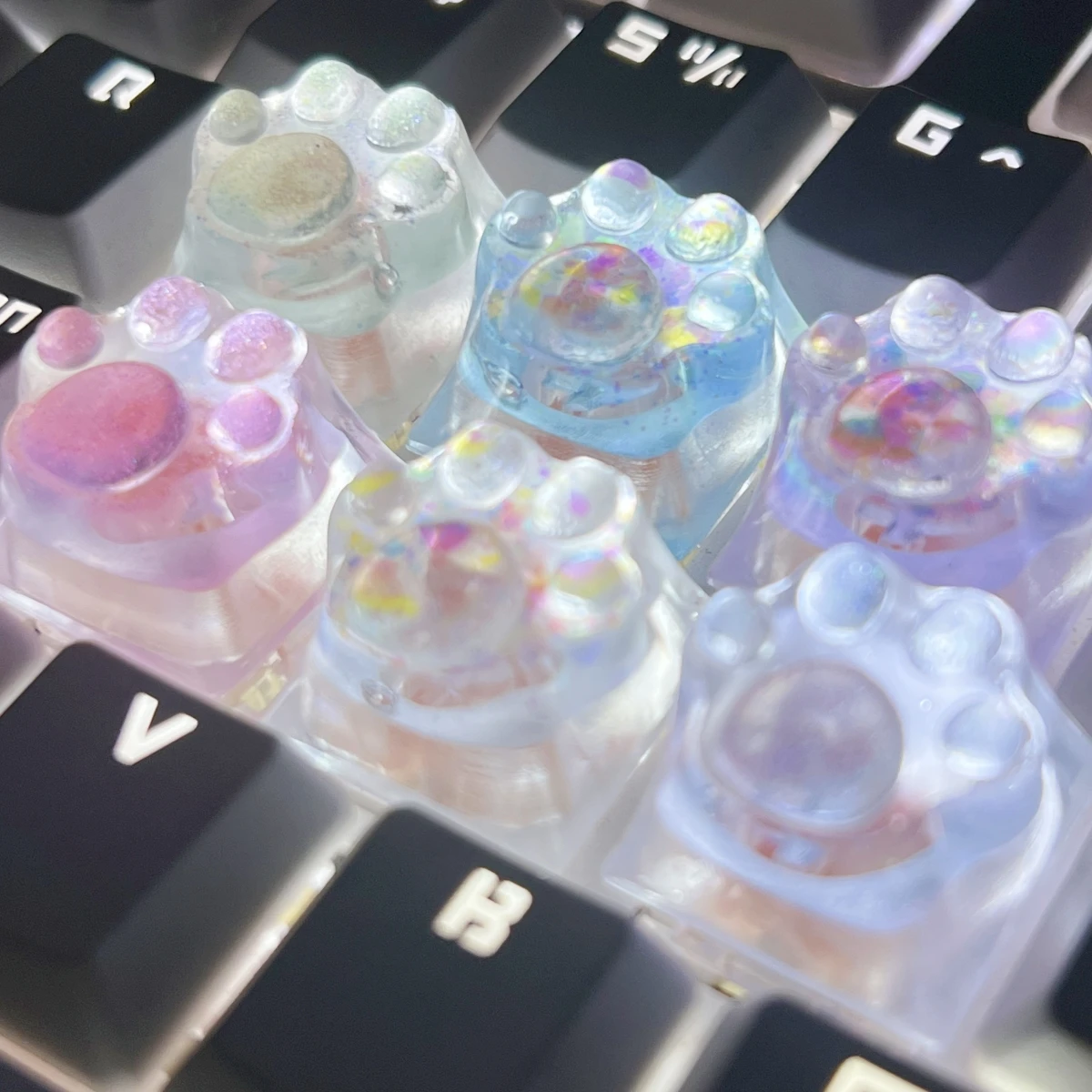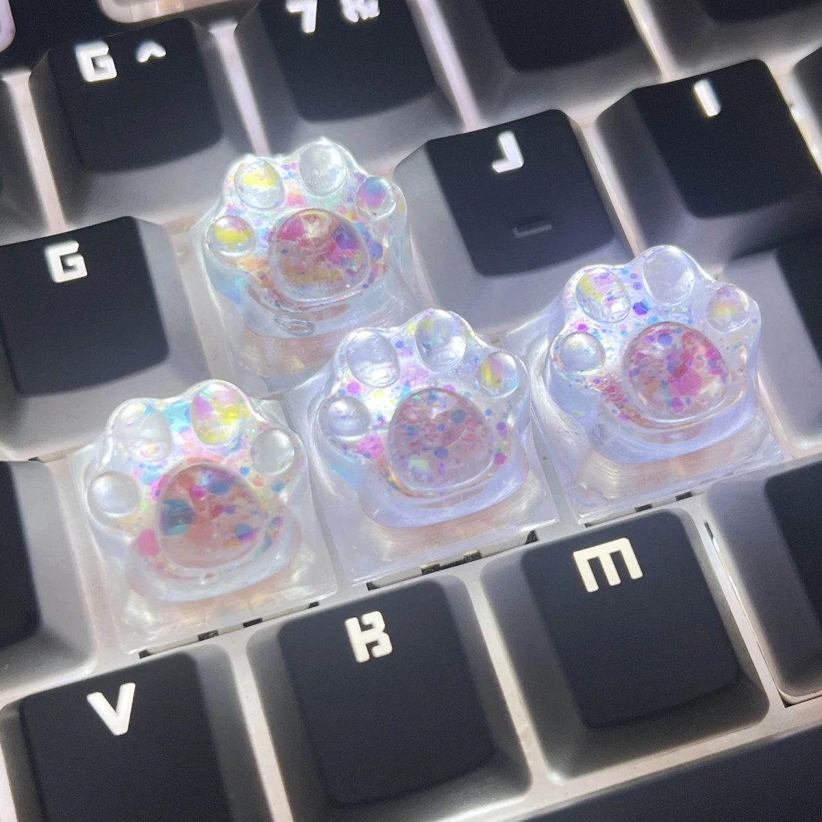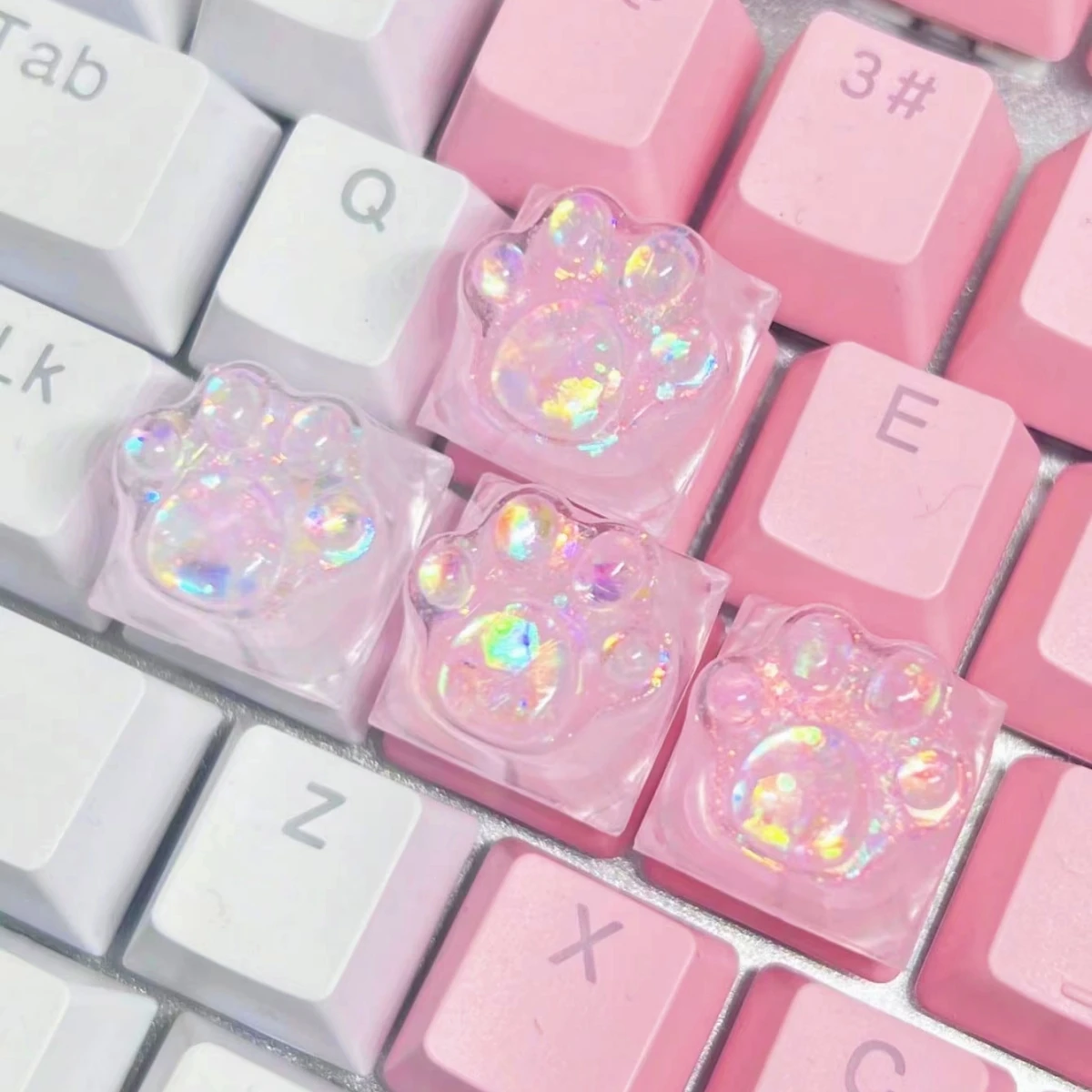 Estas son las pequeñas teclas de pata de 4 piezas, ¡y son increíbles! Yo elegí el color rosa, y definitivamente son rosa, lo puedo garantizar. Los sonidos que produce son agradables y se siente bien en los dedos. Es cómodo y fácil para jugar, ya que puedes encontrar las teclas WASD con mucha facilidad. 100% recomendado