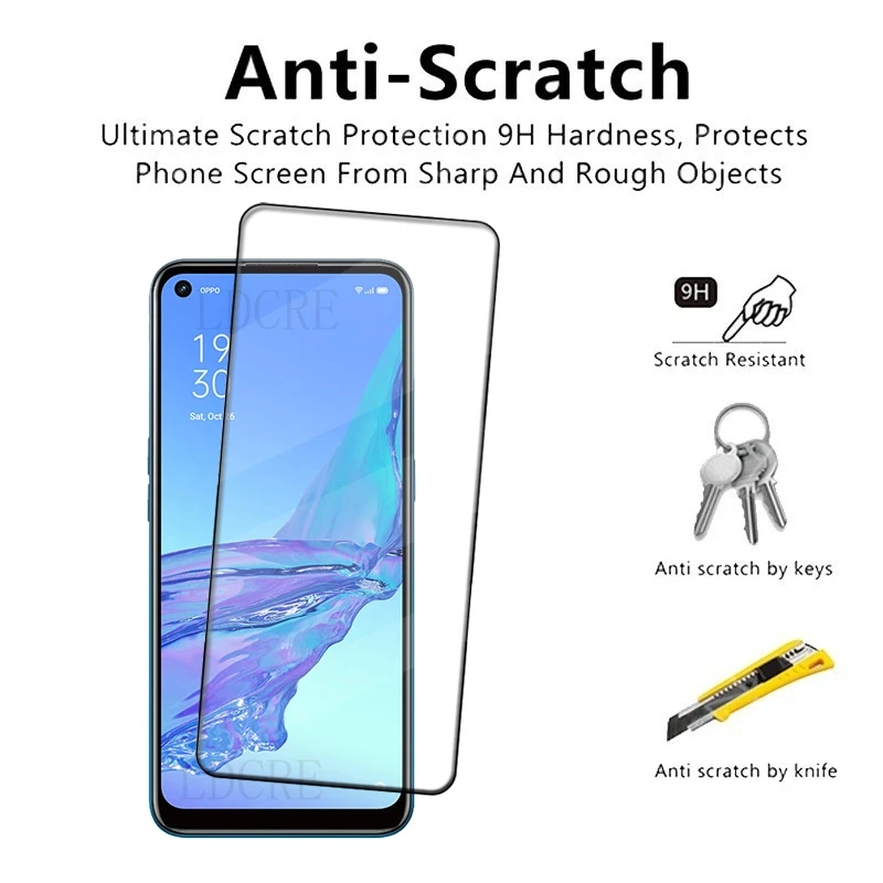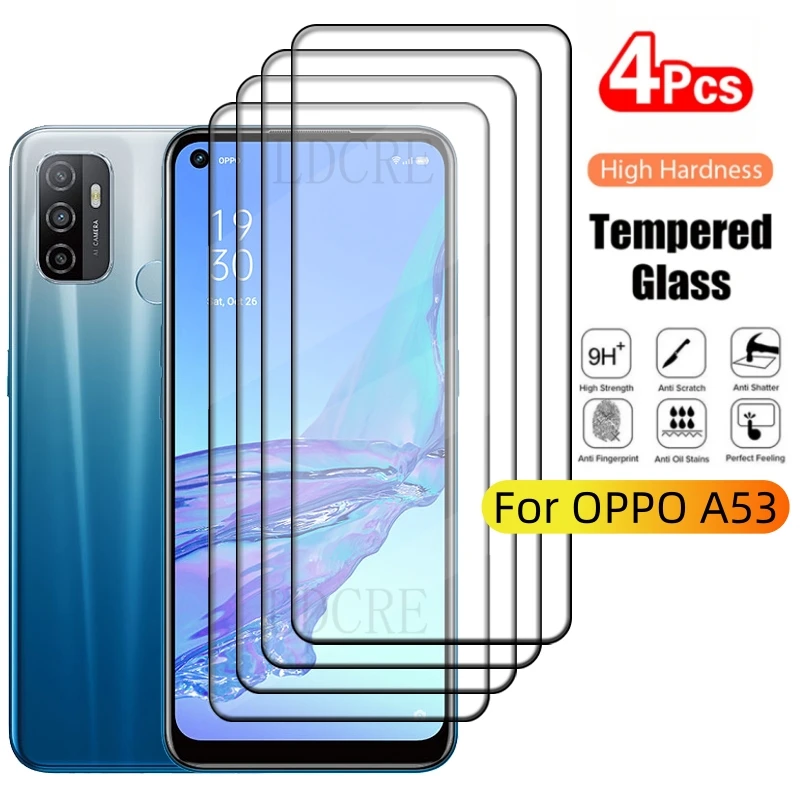 Comprar 4 Uds para OPPO A53 vidrio OPPO A53 vidrio templado 9H HD película protectora pegamento de cobertura completa para Protector de pantalla OPPO A53 OPPOA53 6,5"