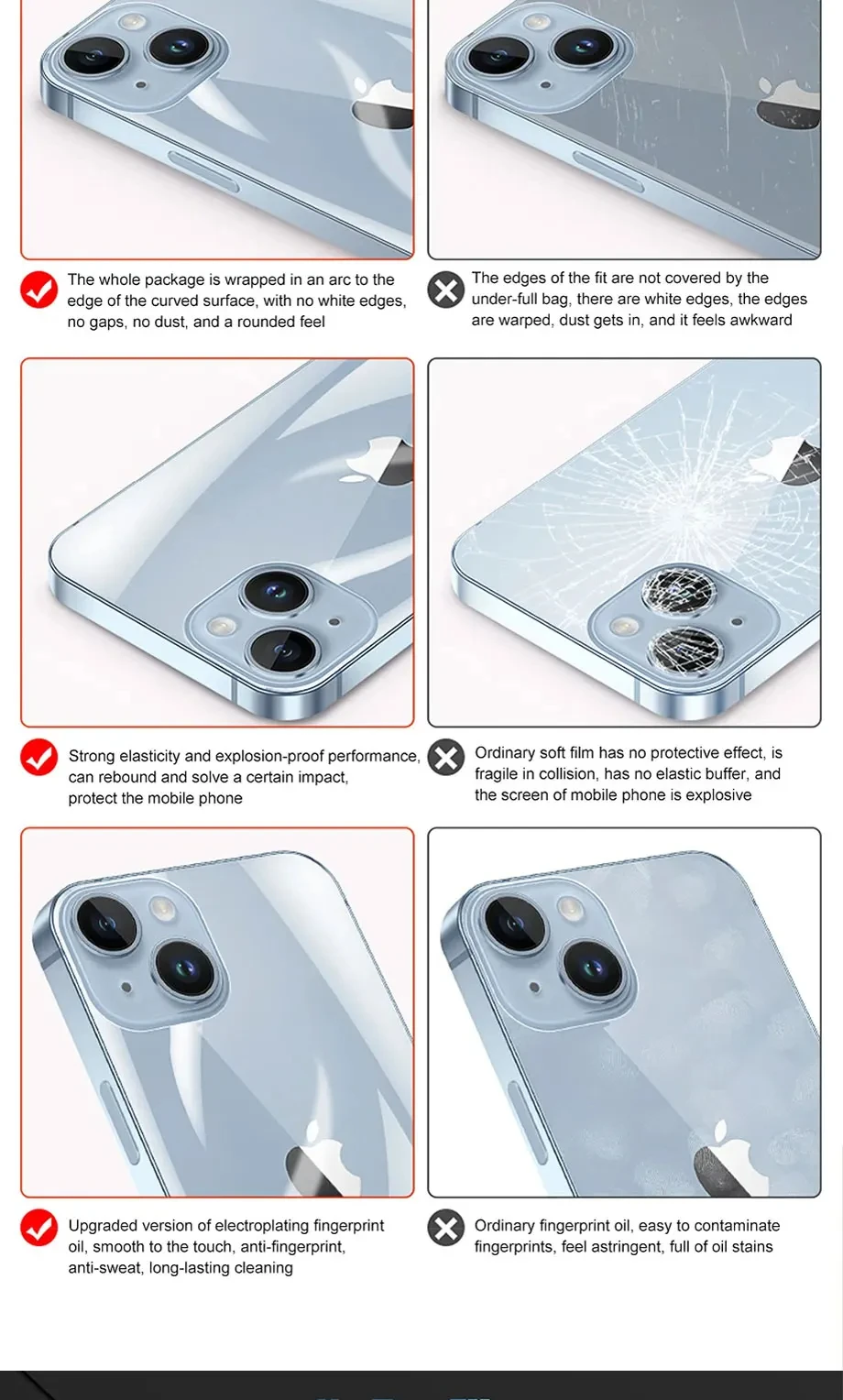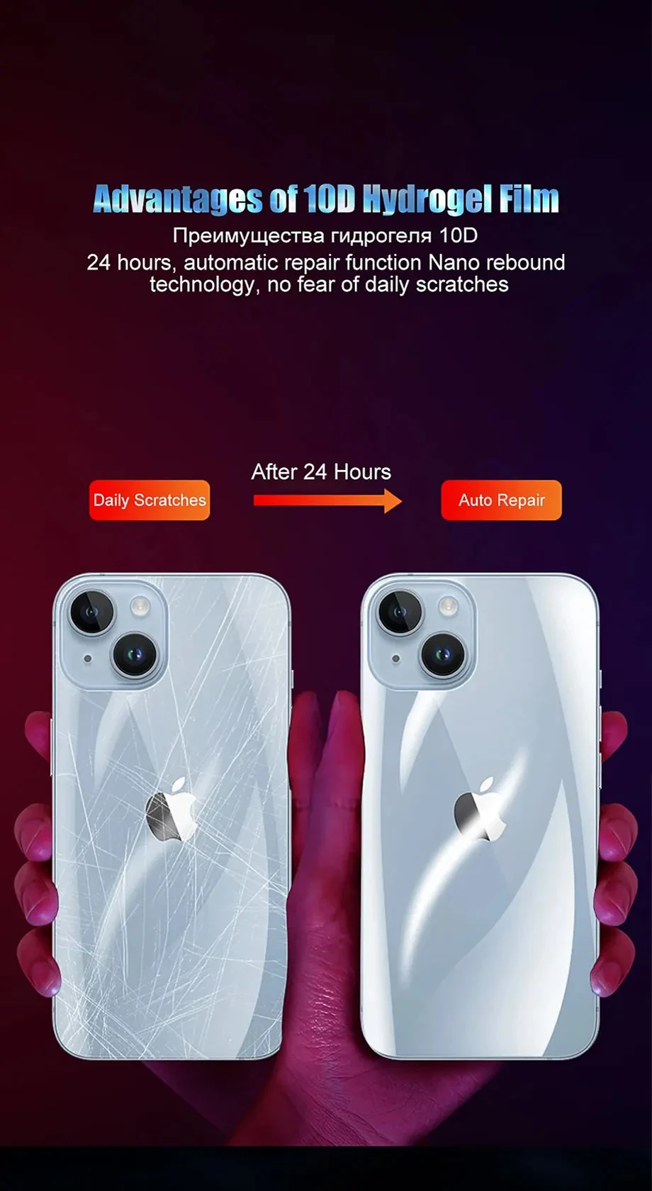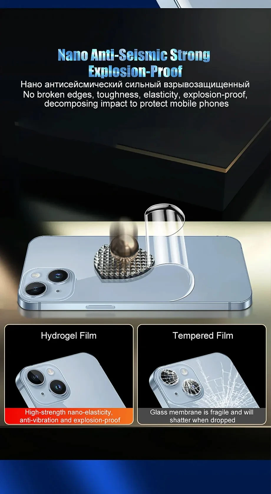 Comprar 4 Uds película de hidrogel de cubierta completa para iPhone 11 12 13 14 15 Pro Max protectores de pantalla para iPhone 14 15 Plus película trasera no de vidrio