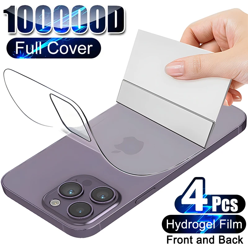 Comprar 4 Uds película de hidrogel suave frontal para iPhone 15 14 11 12 13 Pro Max Mini Protector de pantalla de cubierta completa 7 8 Plus X XR XS Max película