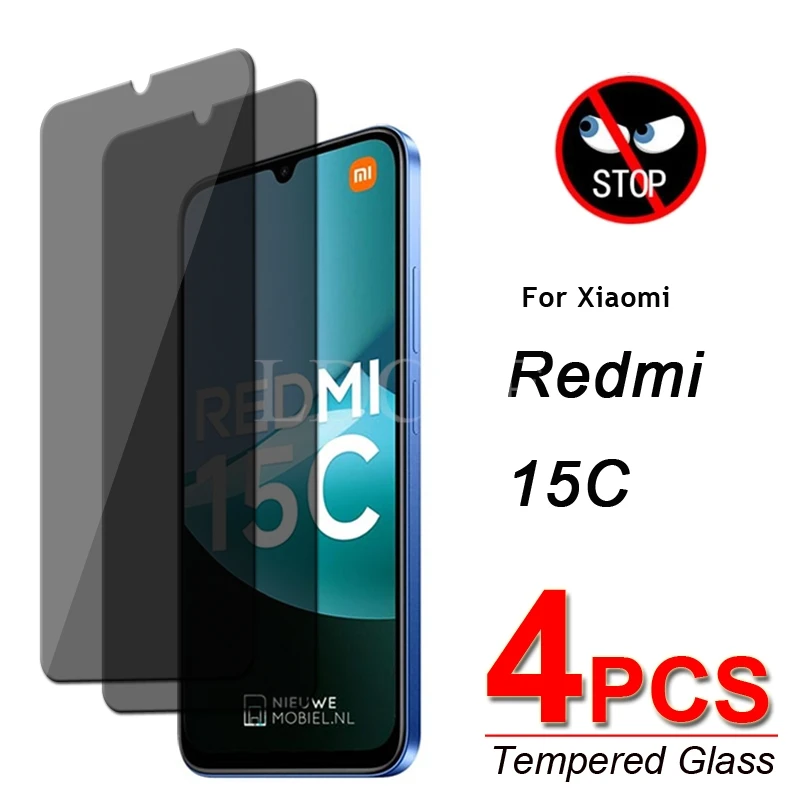 Comprar 4 Uds película de vidrio antiespía para Xiaomi Redmi 15C vidrio Redmi 15C película protectora de pantalla de privacidad Redmi 15C película de vidrio templado