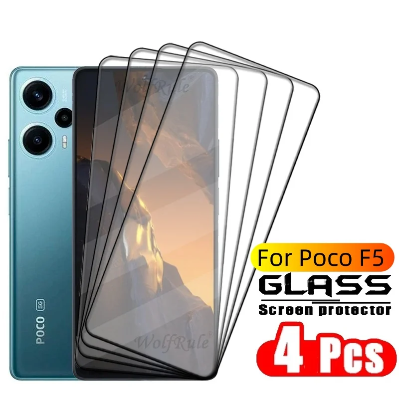 Comprar 4 Uds para Poco F5 vidrio Xiaomi Poco F5 PocoF5 F 5 película protectora de vidrio templado pegamento de cobertura completa 9H HD Protector de pantalla Poco F5